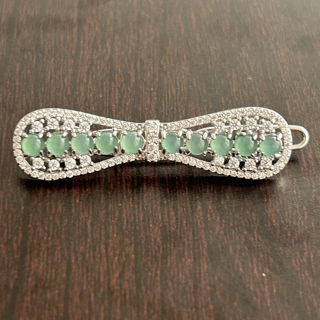 本翡翠ヘアクリップ ミャンマー産 可愛いリボン仕様 氷種 無含侵 無着色