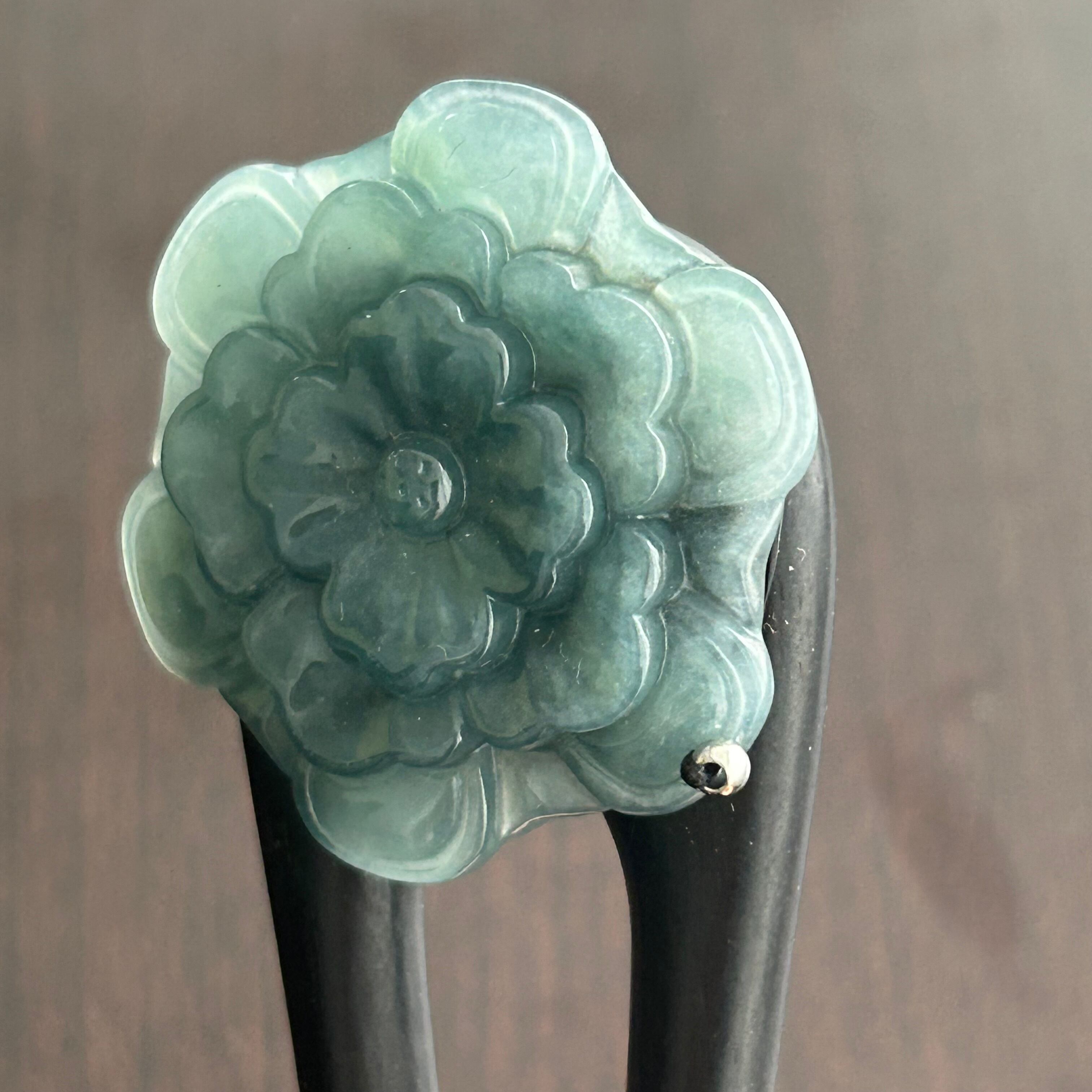 本翡翠 かんざし グァテマラ産 可愛い お花 無含浸 無着色 Natural Jadeite Kanzashi – Guatemala Origin – Cute Floral Design – Untreated & Uncolored