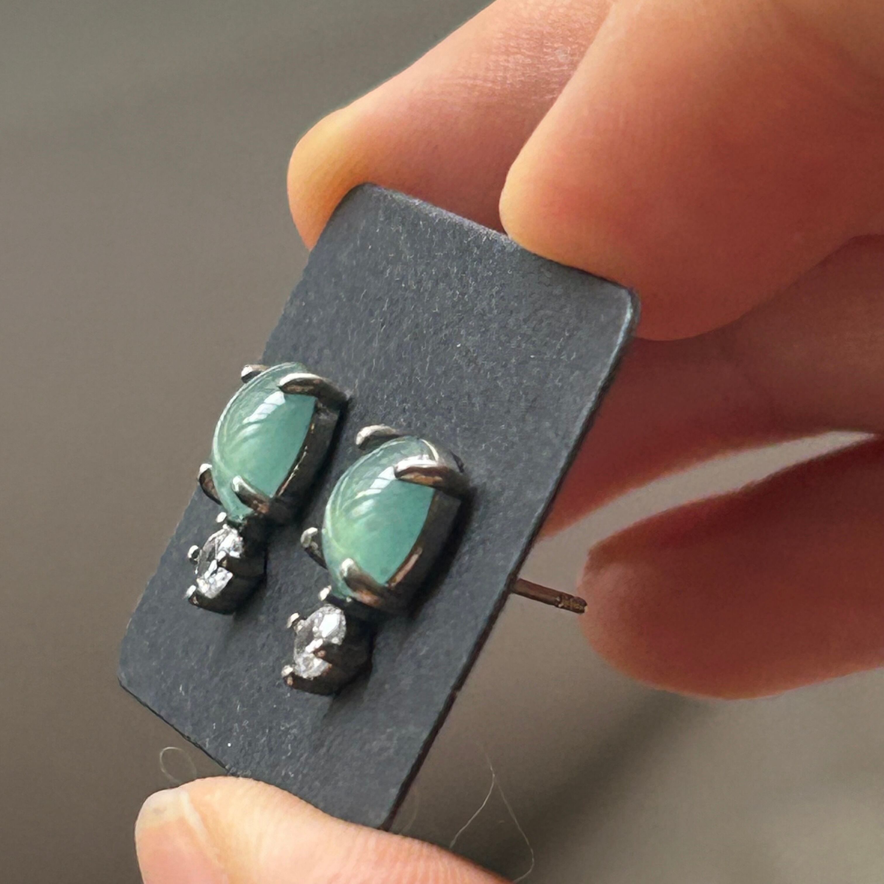 ●翡翠は光線によって、違いが出やすい宝石ですので、違う光線の下で見た感じが少し違います。あらかじめご了承ください。
