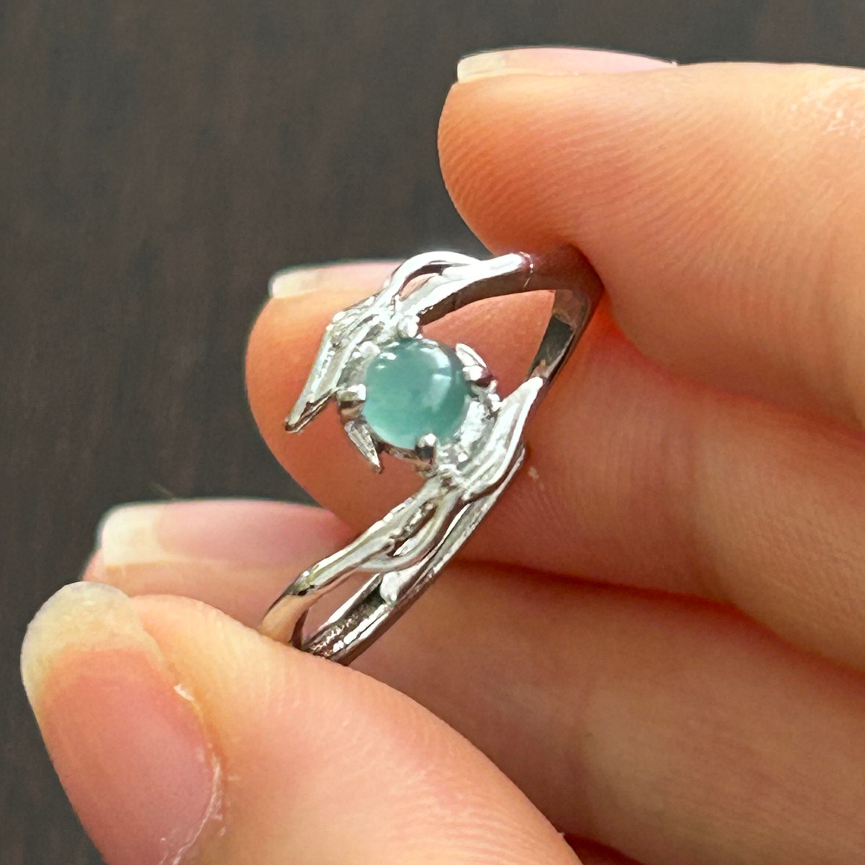 本翡翠指輪 リング 可愛い 花デザイン 氷種 無含浸 無着色 一点物
