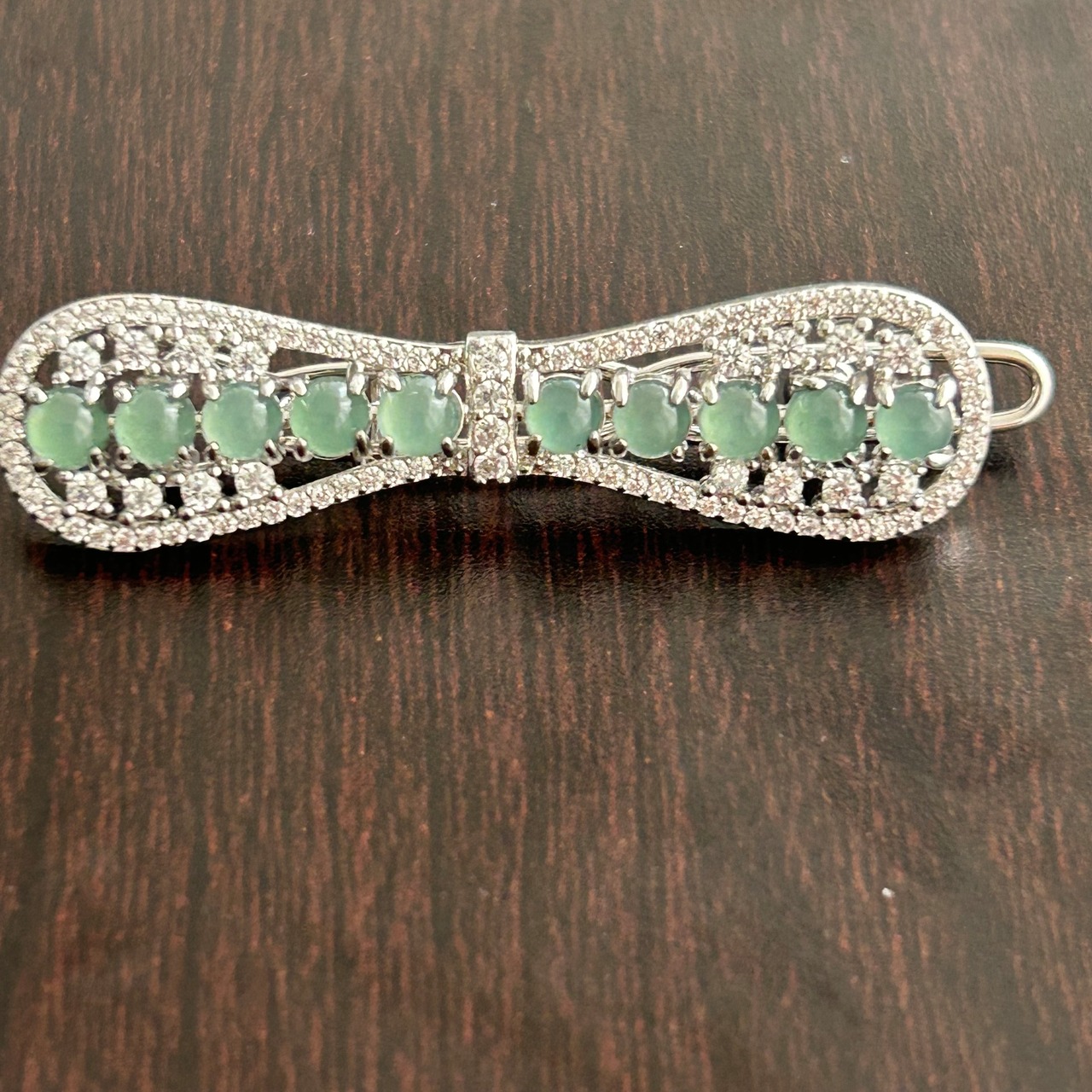本翡翠ヘアクリップ ミャンマー産 可愛いリボン仕様 氷種 無含侵 無着色