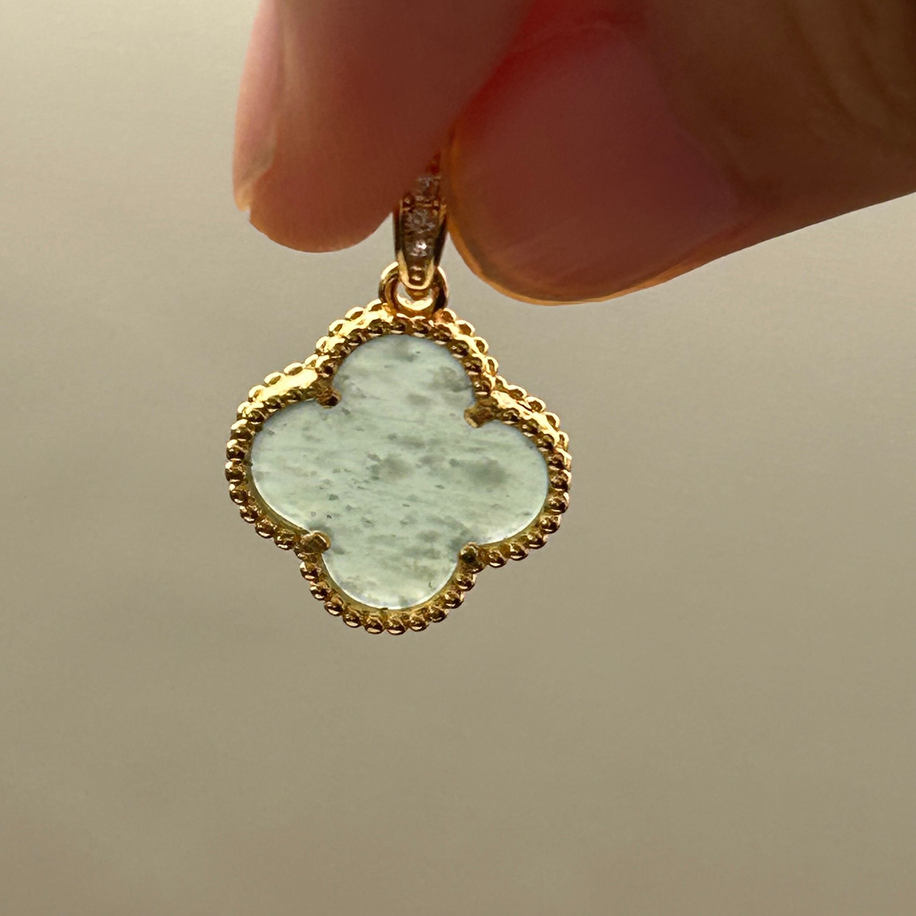 本翡翠ペンダント 四葉 可愛い 氷種 グァテマラ産 無含浸 無着色