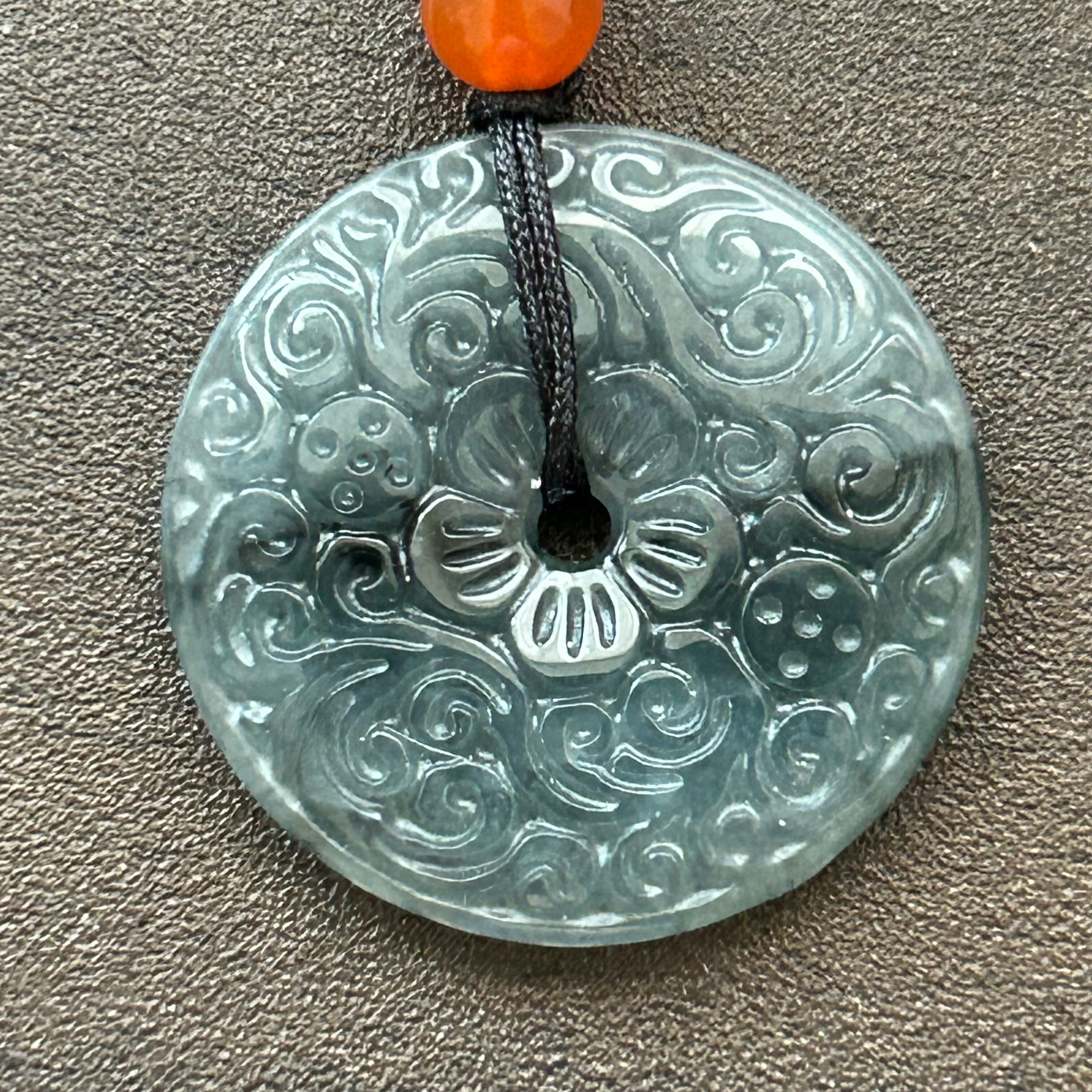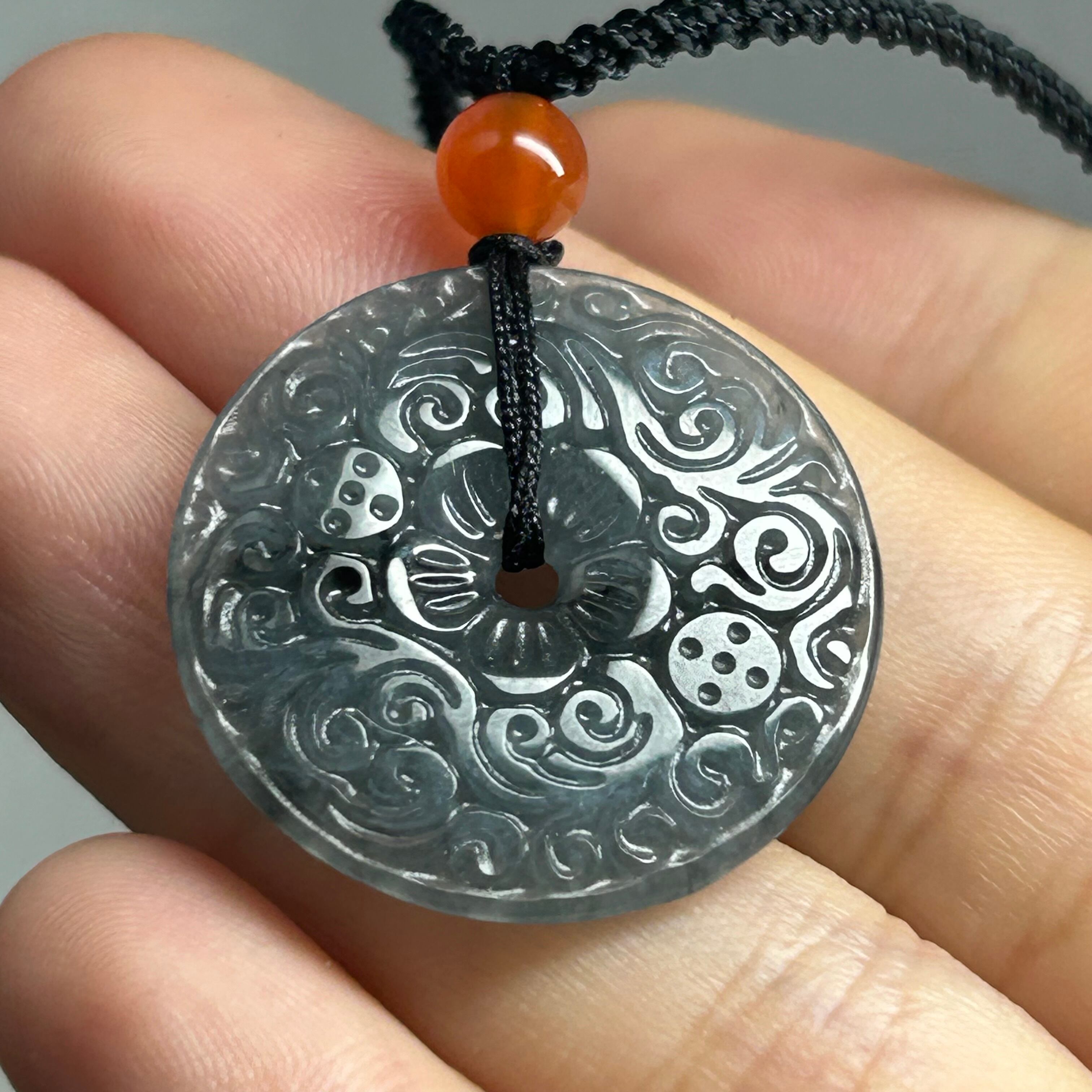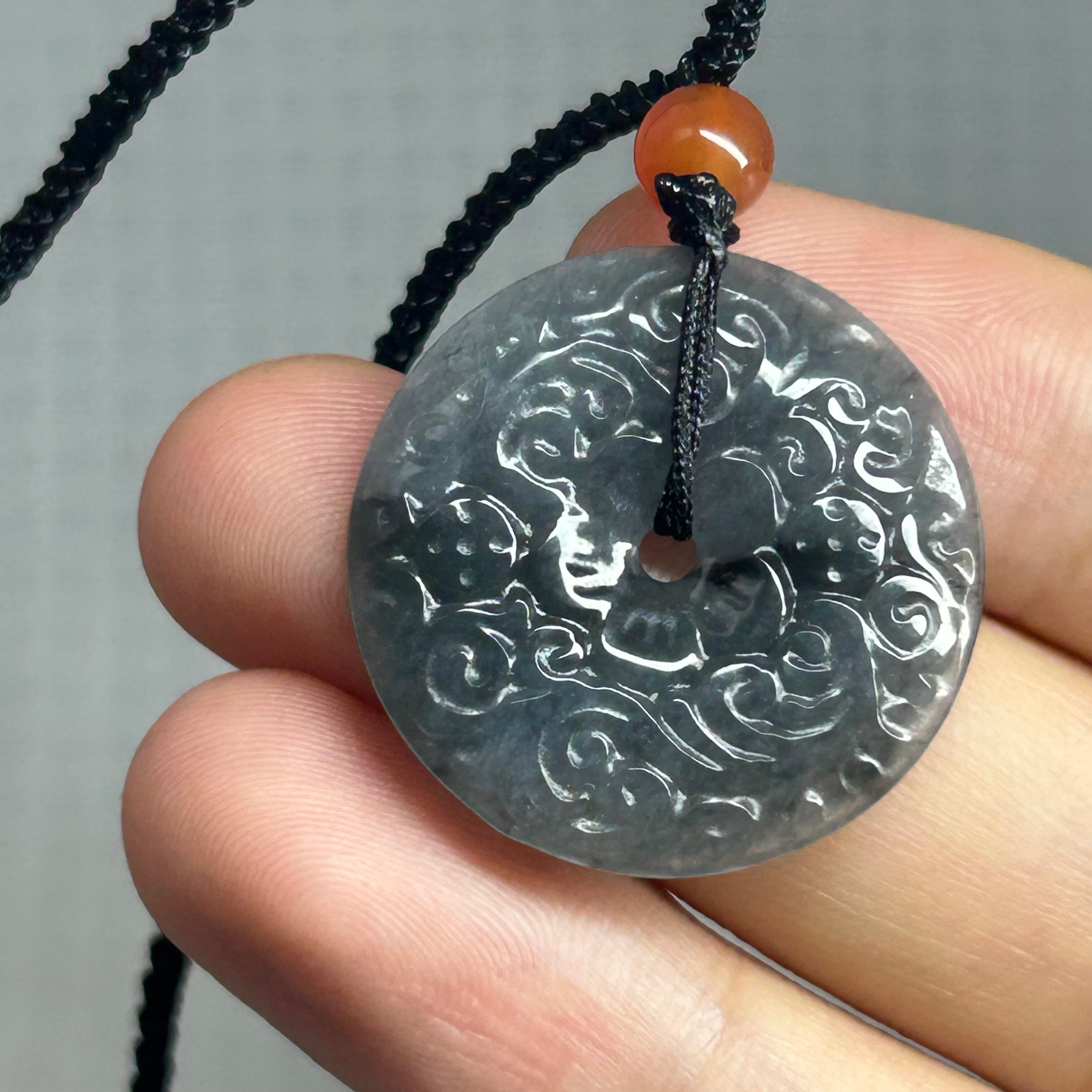 本翡翠ペンダント 両面模様 可愛い 無含浸 無着色 ミャンマー産 天然石 彫刻 平安扣 お守り 開運