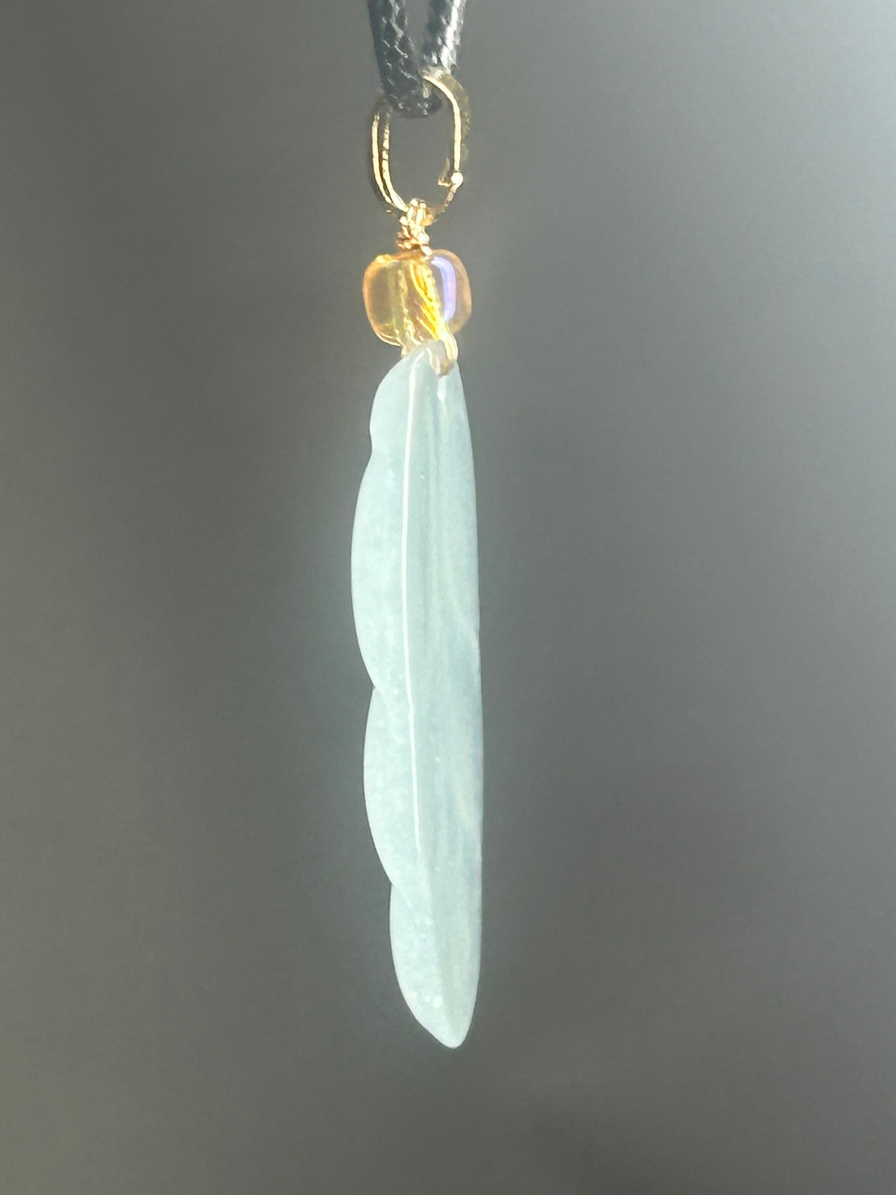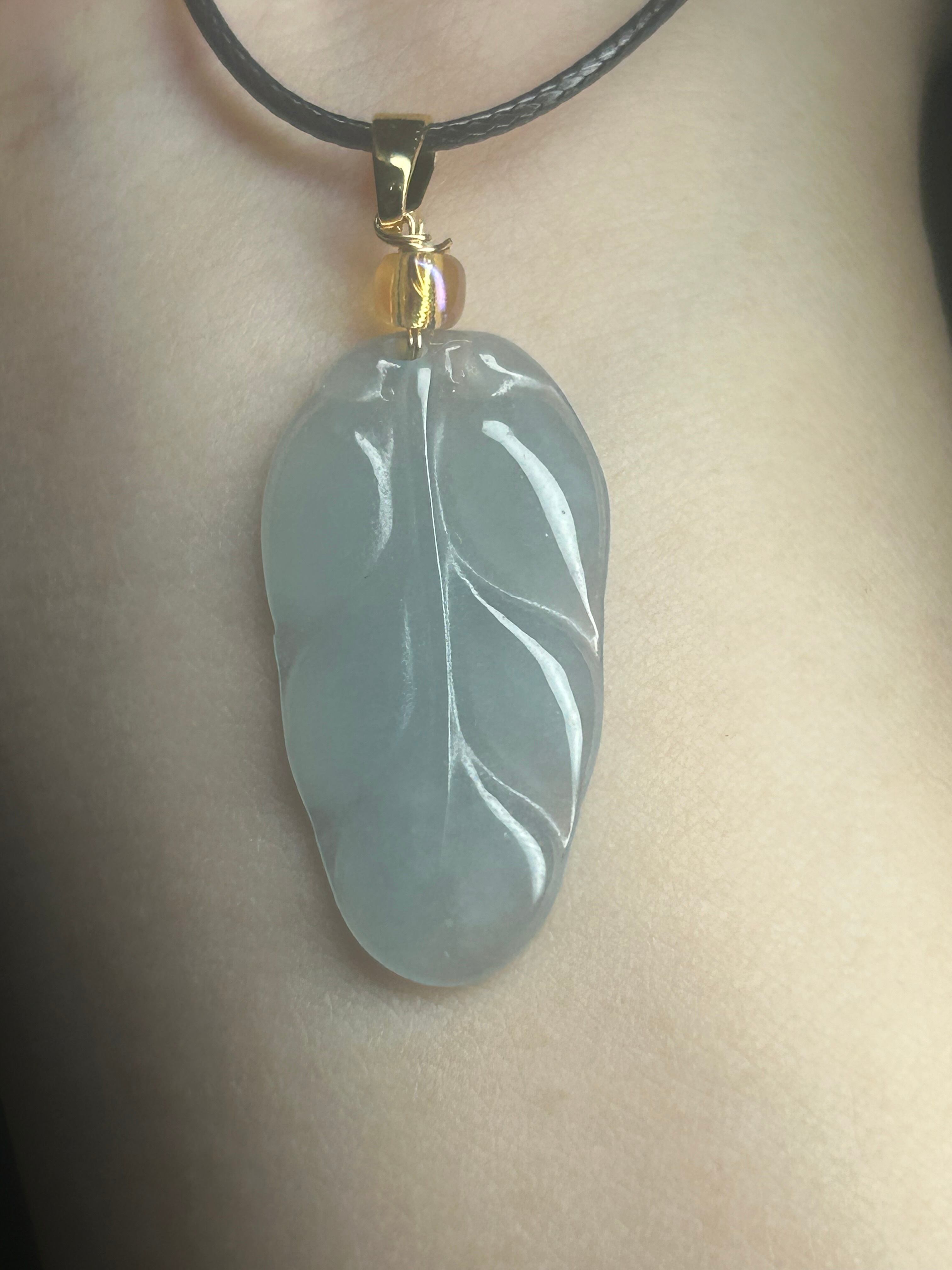 本翡翠ペンダント 福葉 氷種 お買い得 一点物 無着色 無含浸