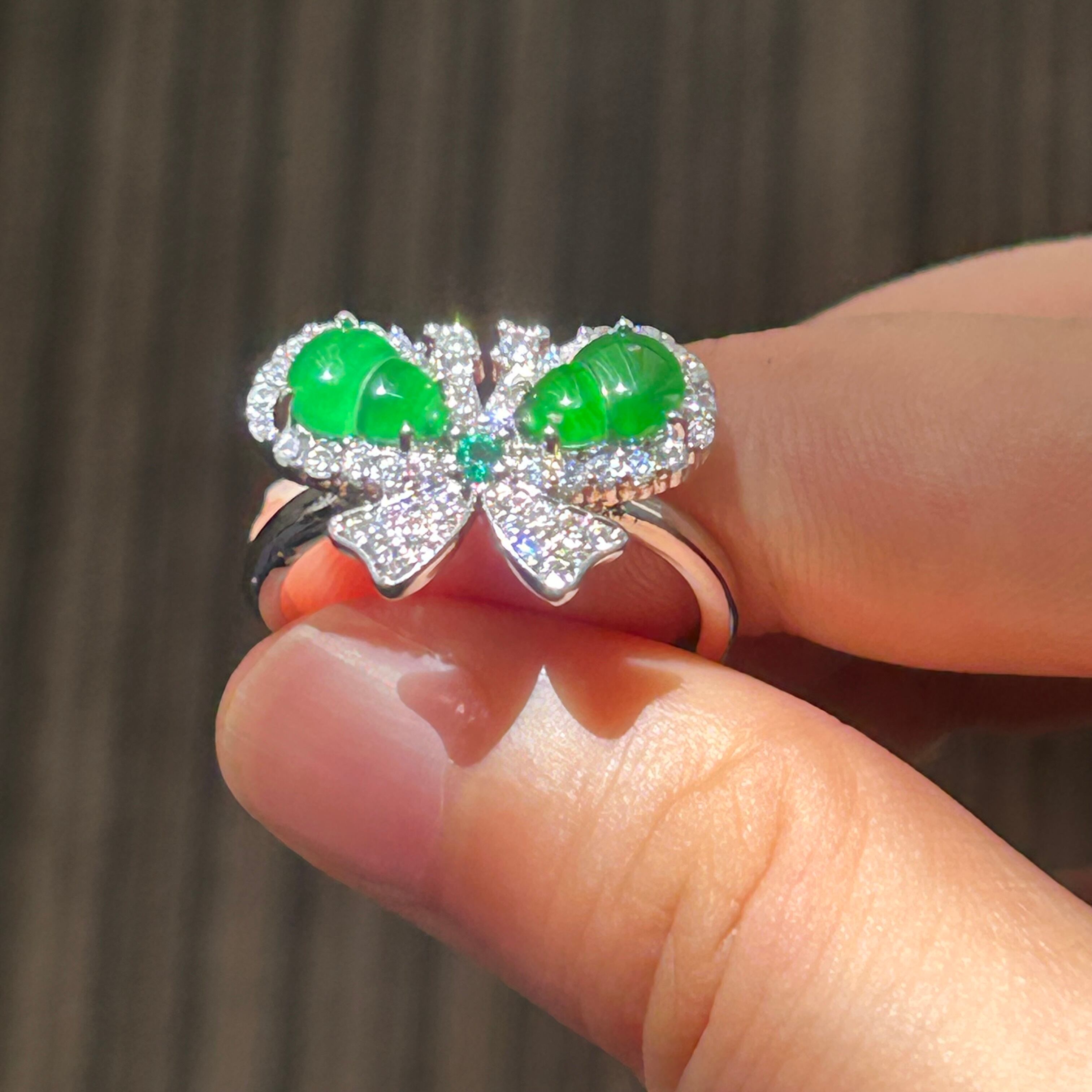 ●翡翠は光線によって、違いが出やすい宝石ですので、違う光線の下で見た感じが少し違います。あらかじめご了承ください。