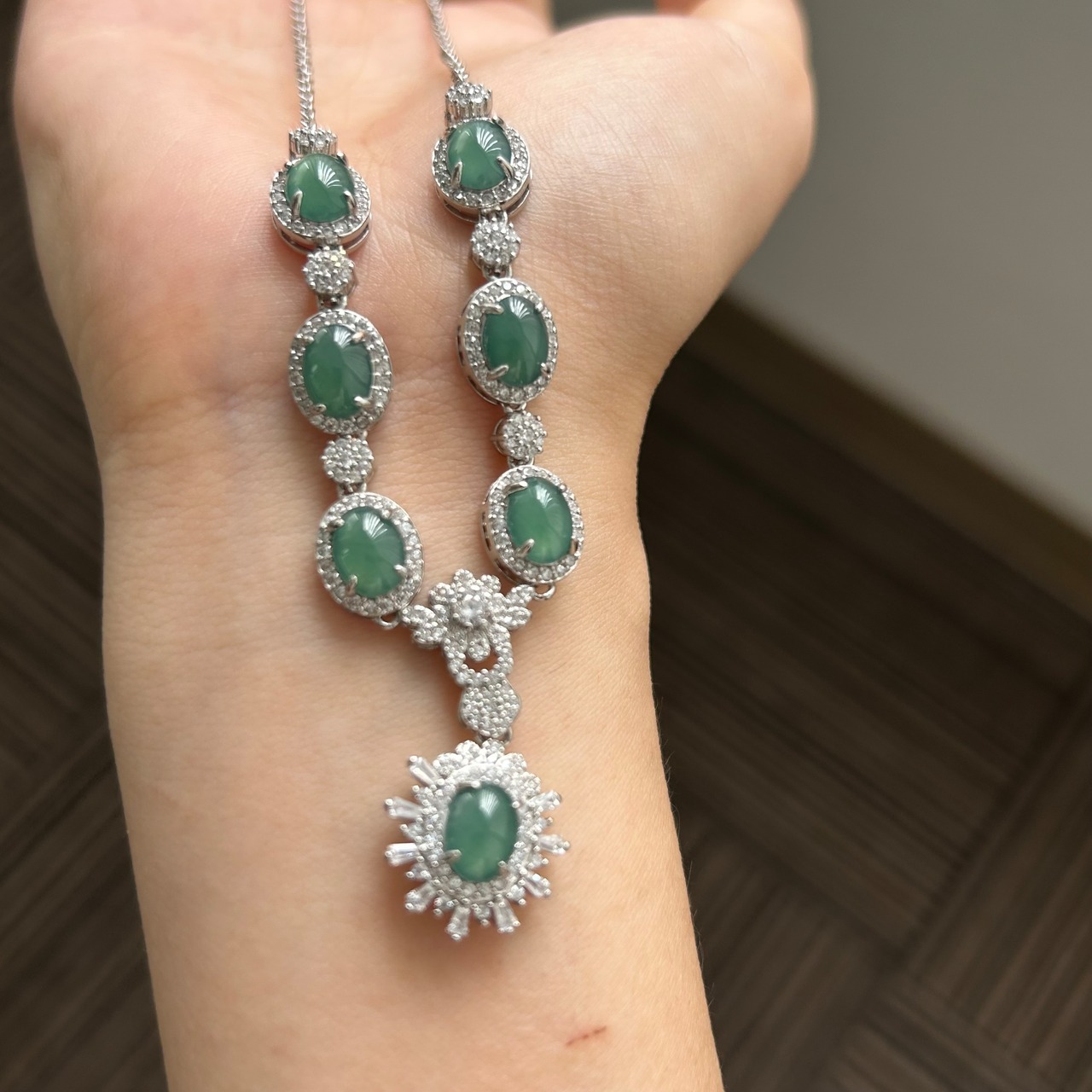 ●翡翠は光線によって、違いが出やすい宝石ですので、違う光線の下で見た感じが少し違います。あらかじめご了承ください。