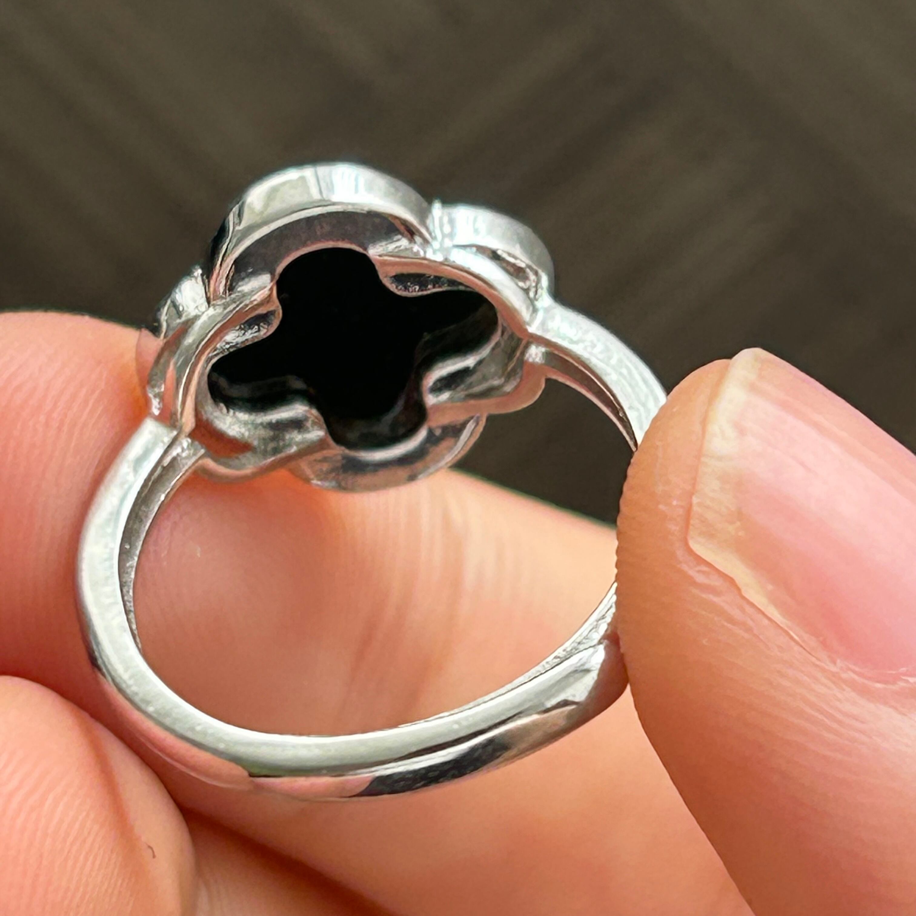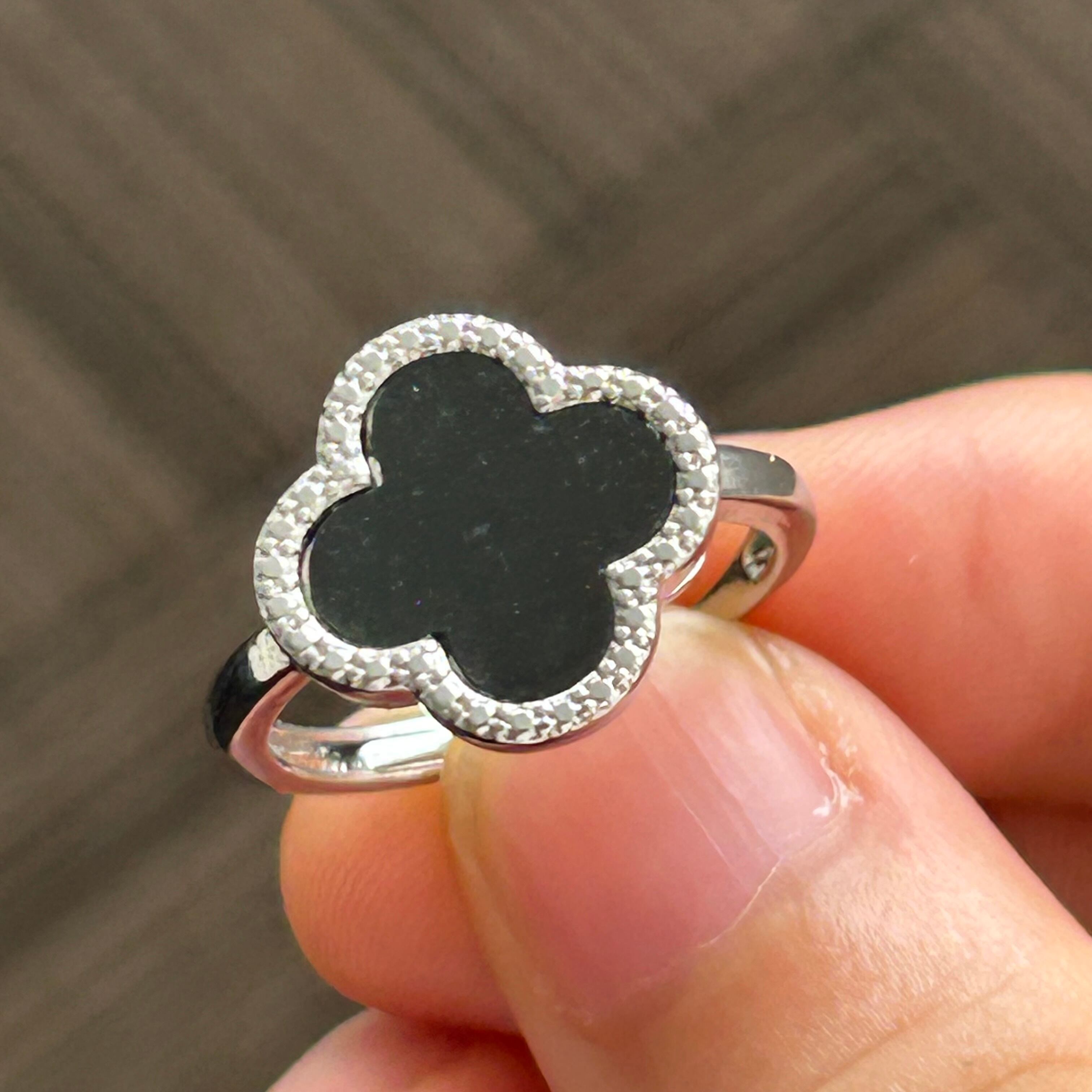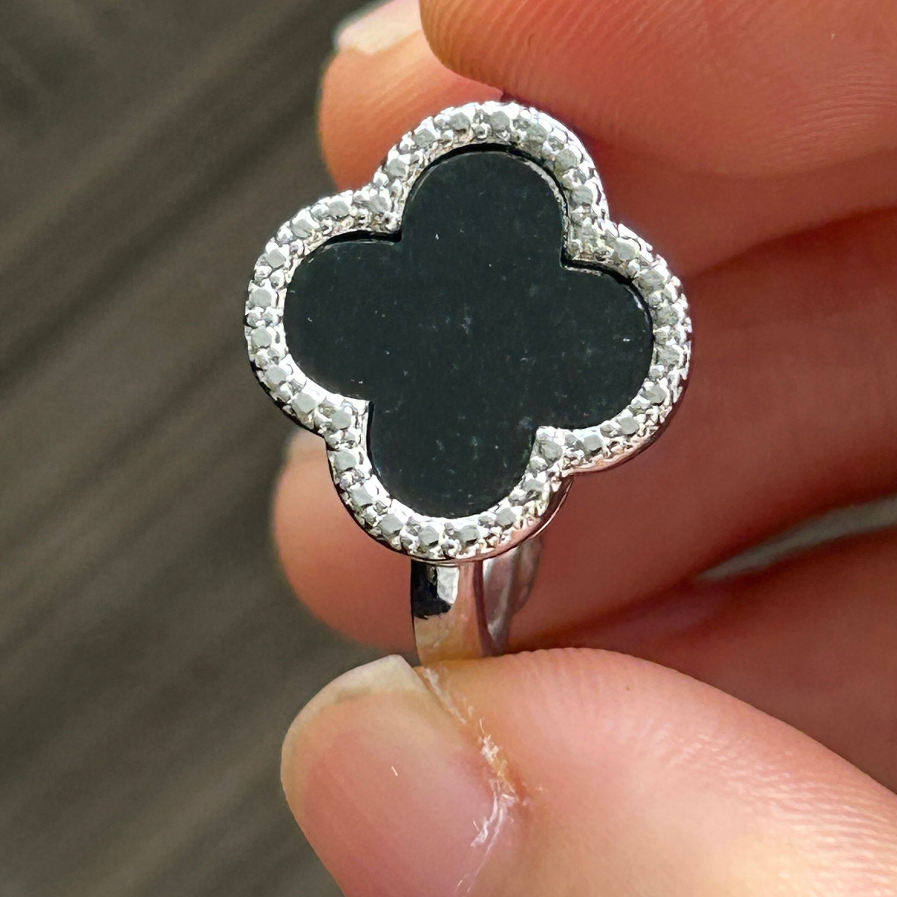 本翡翠指輪 リング ミャンマー産 黒翡翠 無含浸 無着色 一点物 四葉 天然石