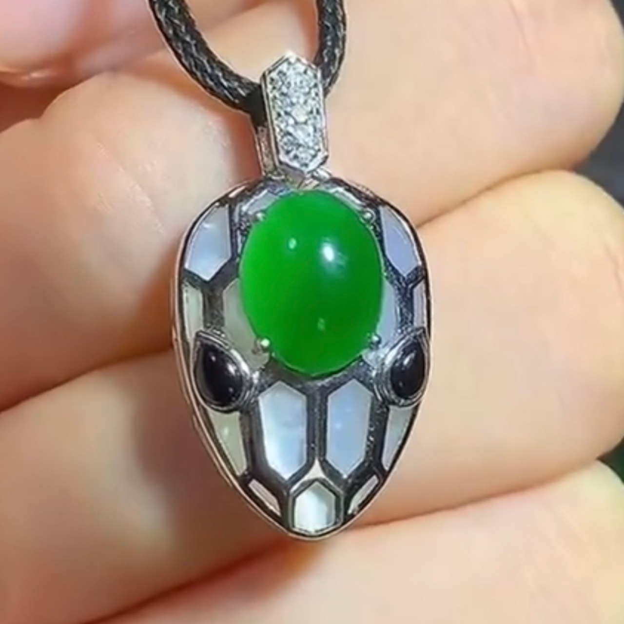 本翡翠ペンダント ヘビ k18 ダイヤ 無含浸 無着色 陽緑 グァテマラ産 氷種 一点物
