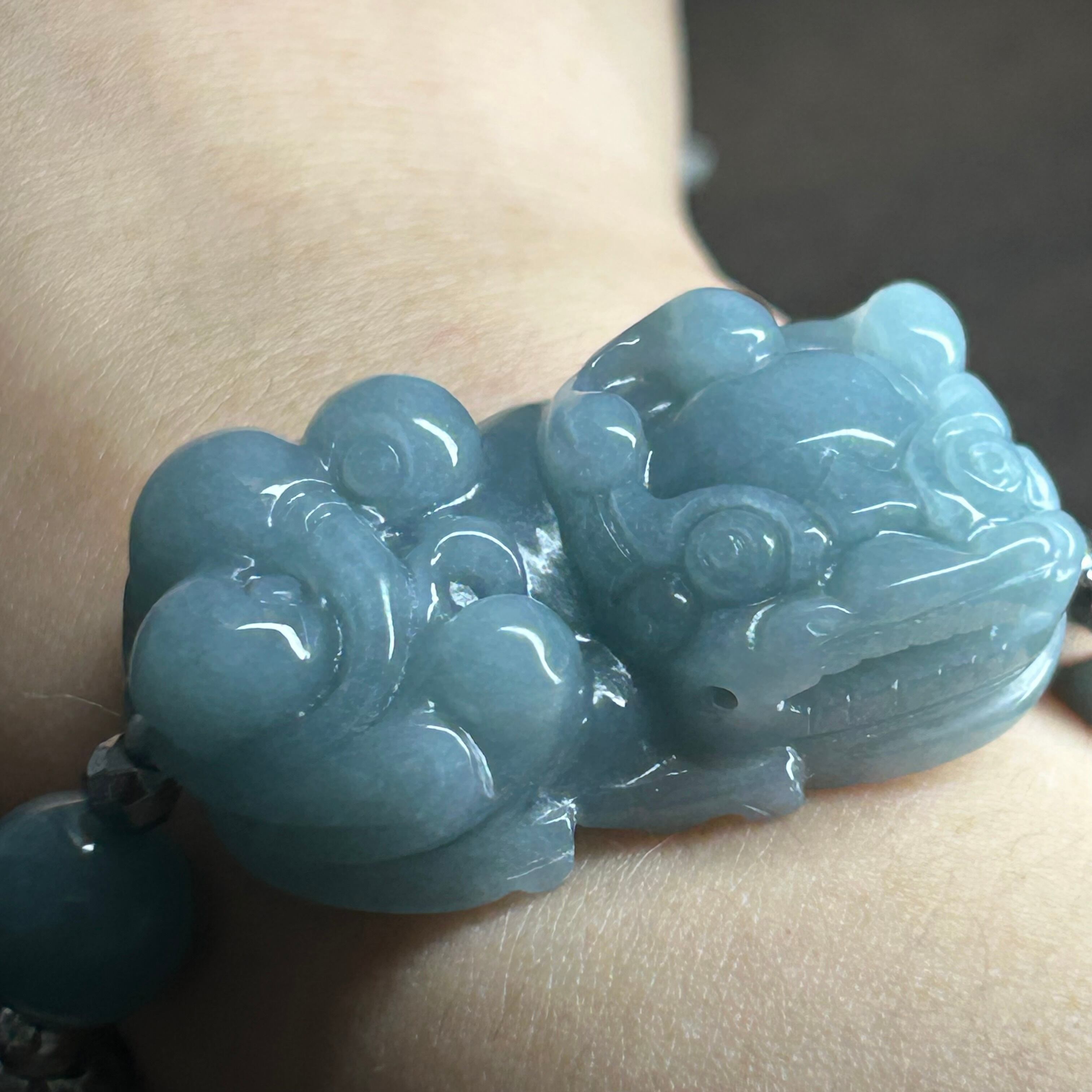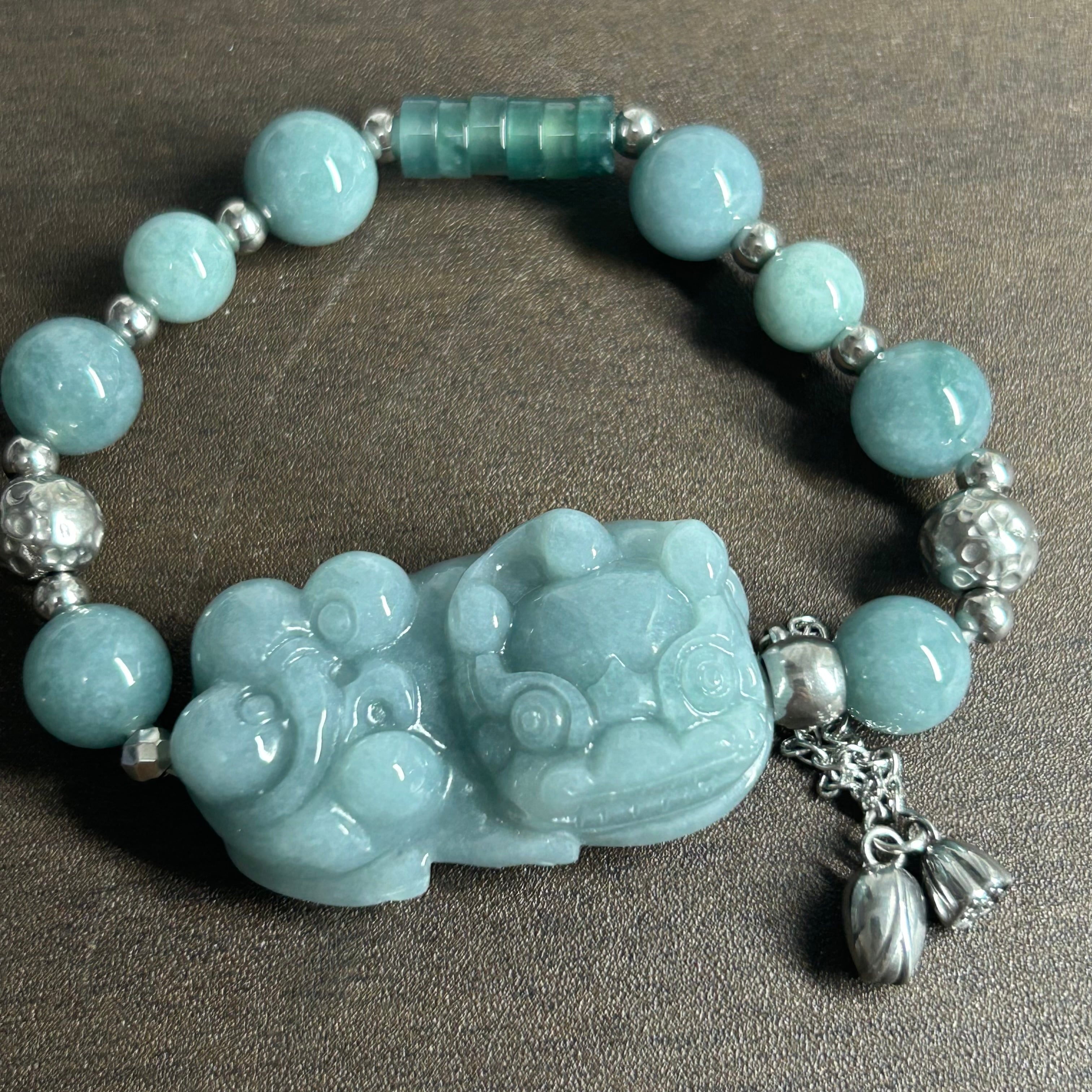 本翡翠ブレスレット 貔貅 グァテマラ産 師匠作品 可愛い 金運アップ 天然石 無含浸 無着色 男女兼用 お守り 縁起物 贈り物 国石 5月誕生石 誕生日 記念日 ジュエリー