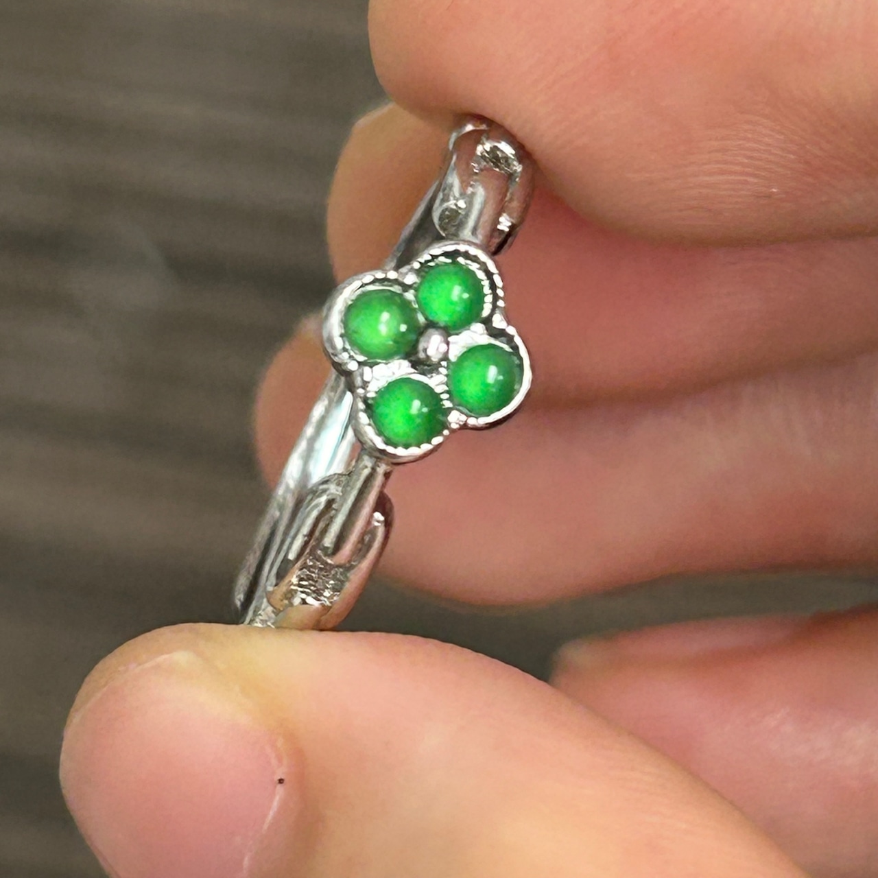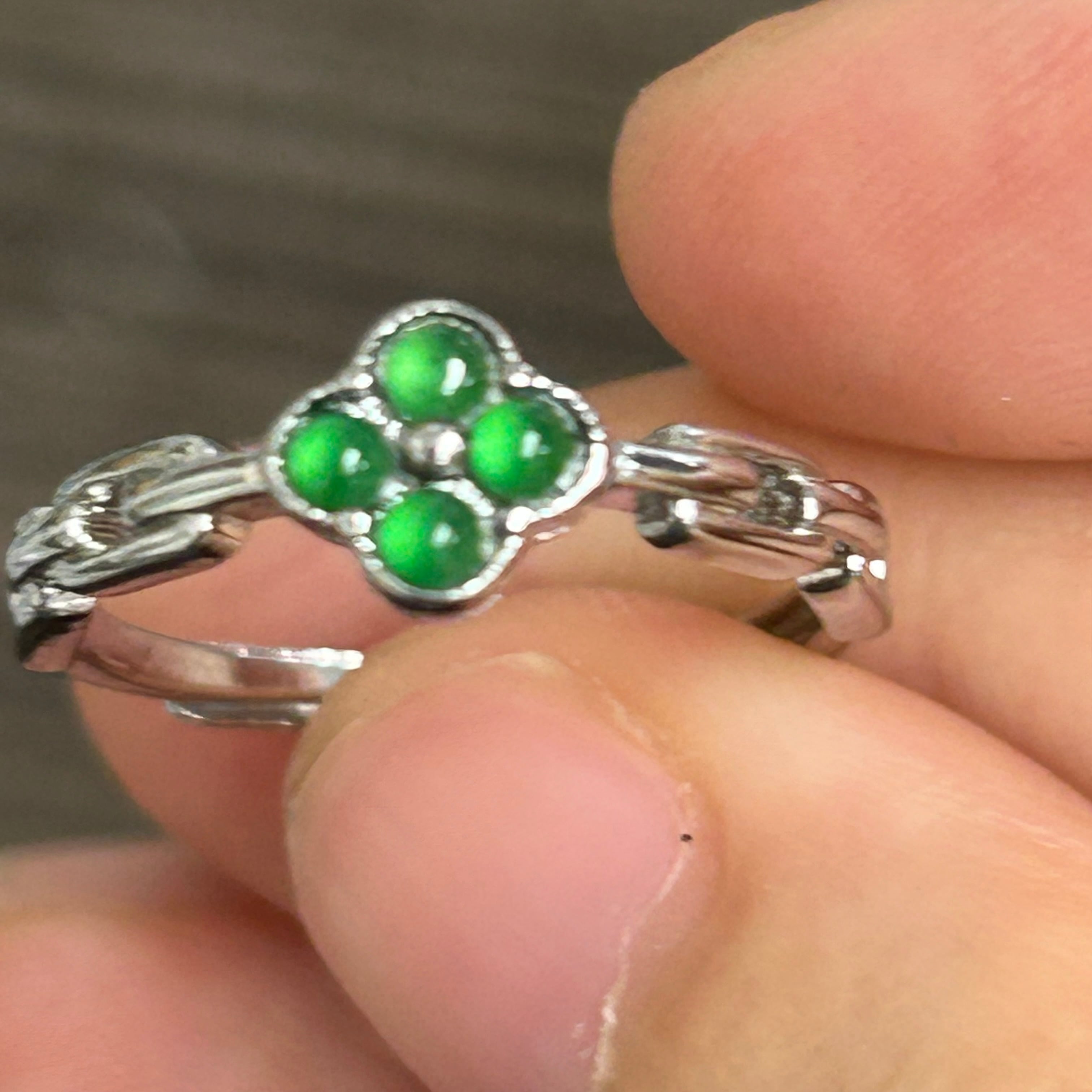 本翡翠指輪 リング 陽緑 四葉 ミャンマー産 氷種 可愛い パワーストーン 天然石