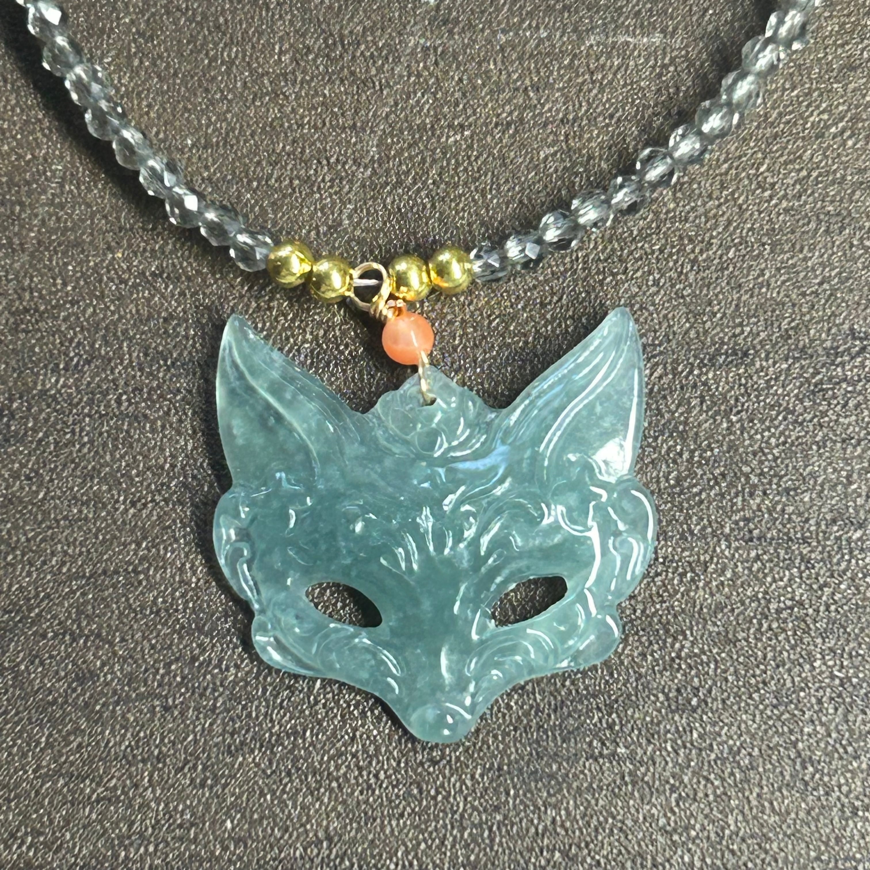 本翡翠ペンダント キツネ仮面 お守り 可愛い 無含浸 無着色 グァテマラ産