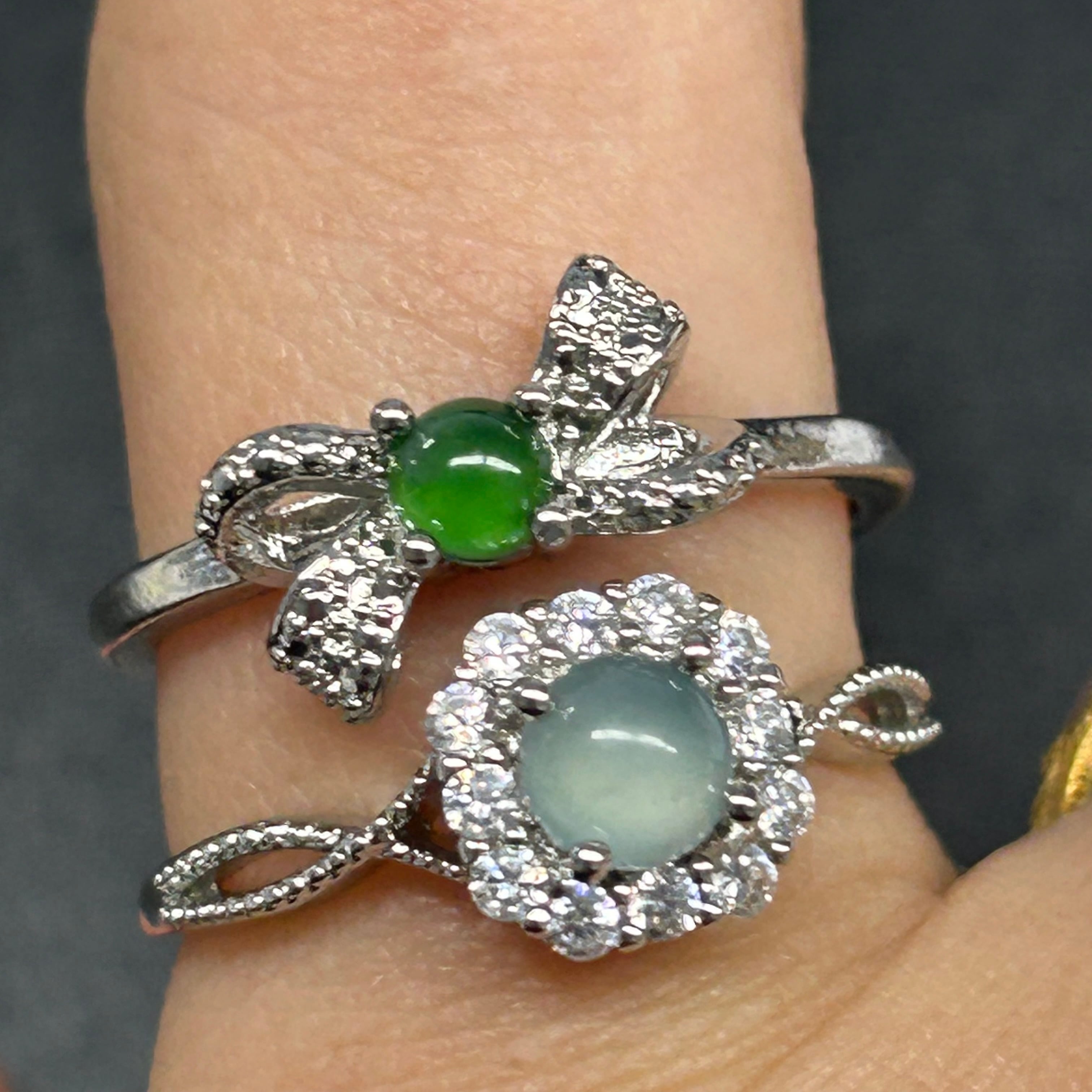 本翡翠指輪 リング 陽緑 白 2本 氷種 限定品