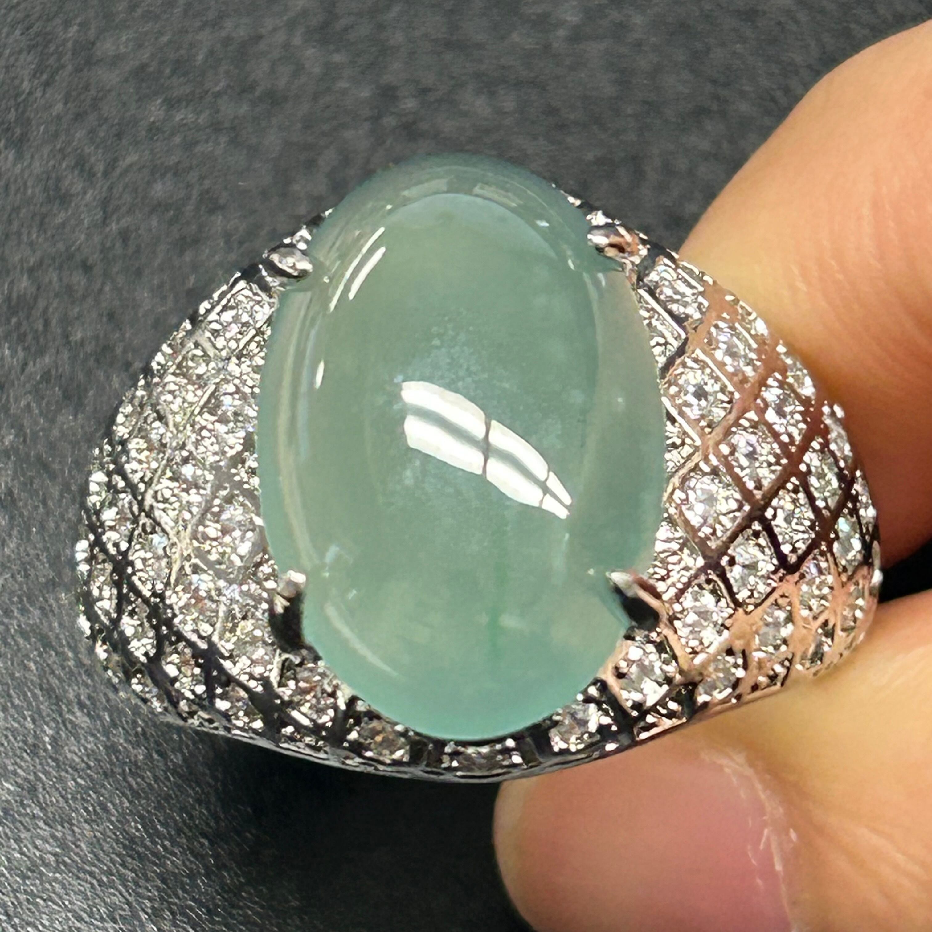 ミャンマー産の天然本翡翠を使用した、圧倒的な存在感を放つ超大型サイズのリングです。