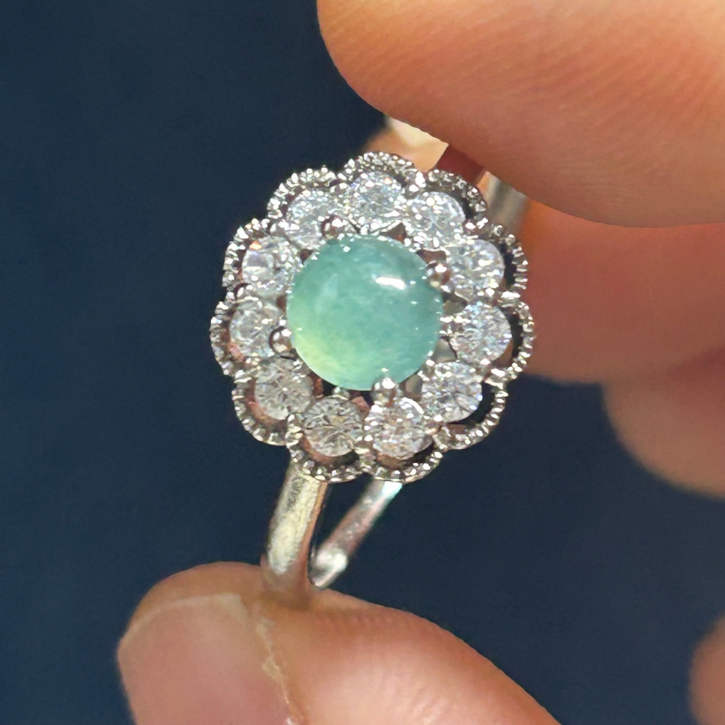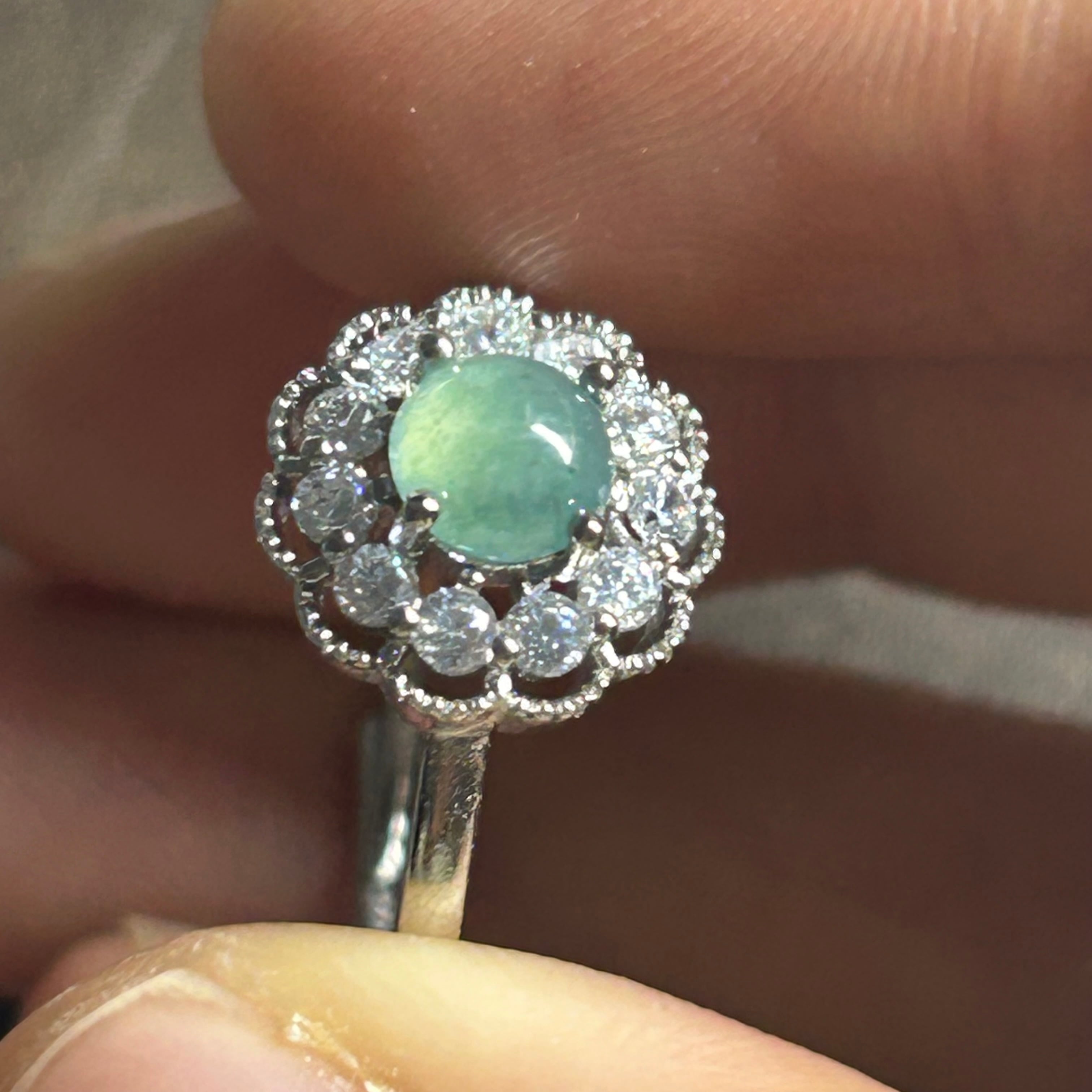 ●翡翠は光線によって、違いが出やすい宝石ですので、違う光線の下で見た感じが少し違います。あらかじめご了承ください。