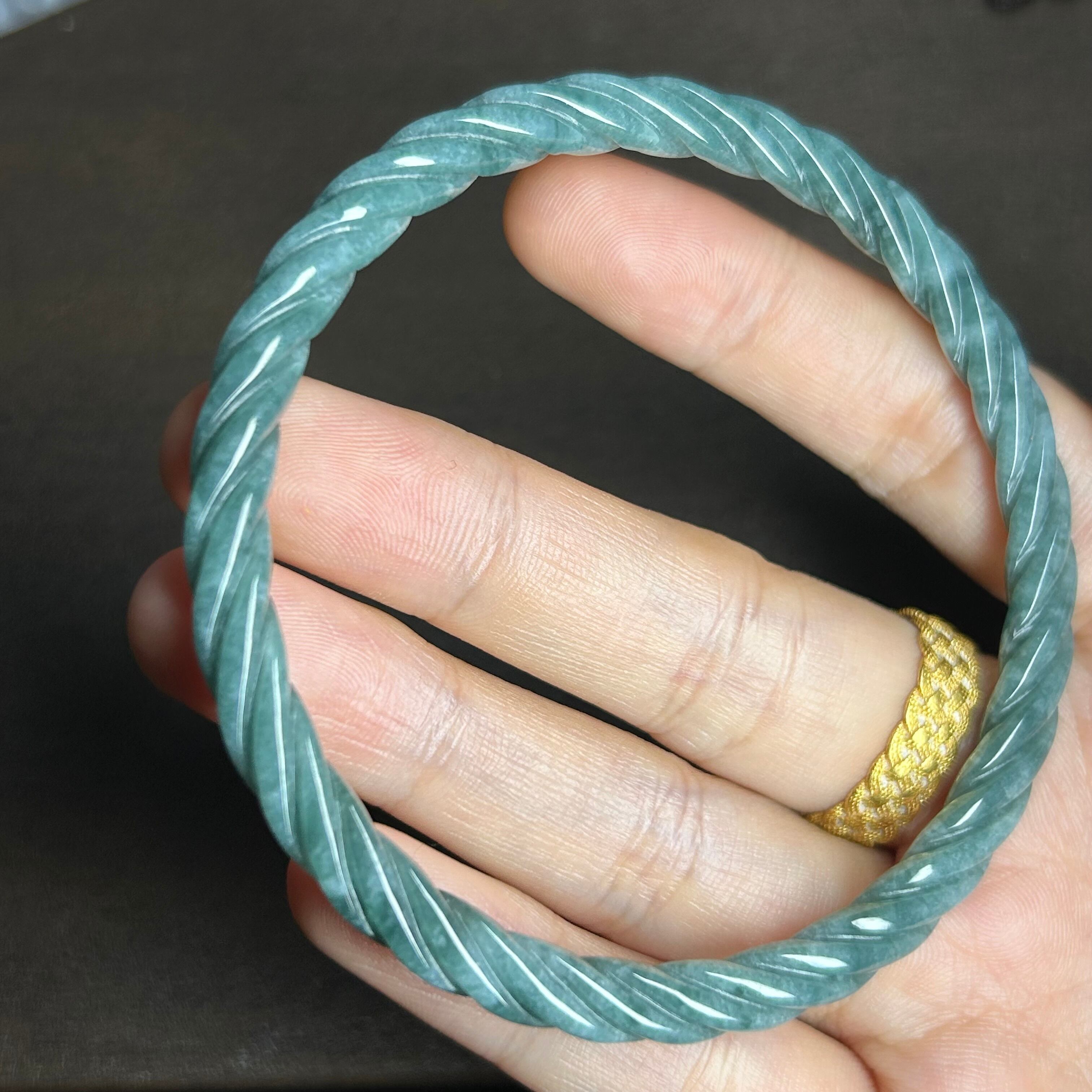 本翡翠ブレスレット バングル グァテマラ産 ねじねじ 無含浸 無着色