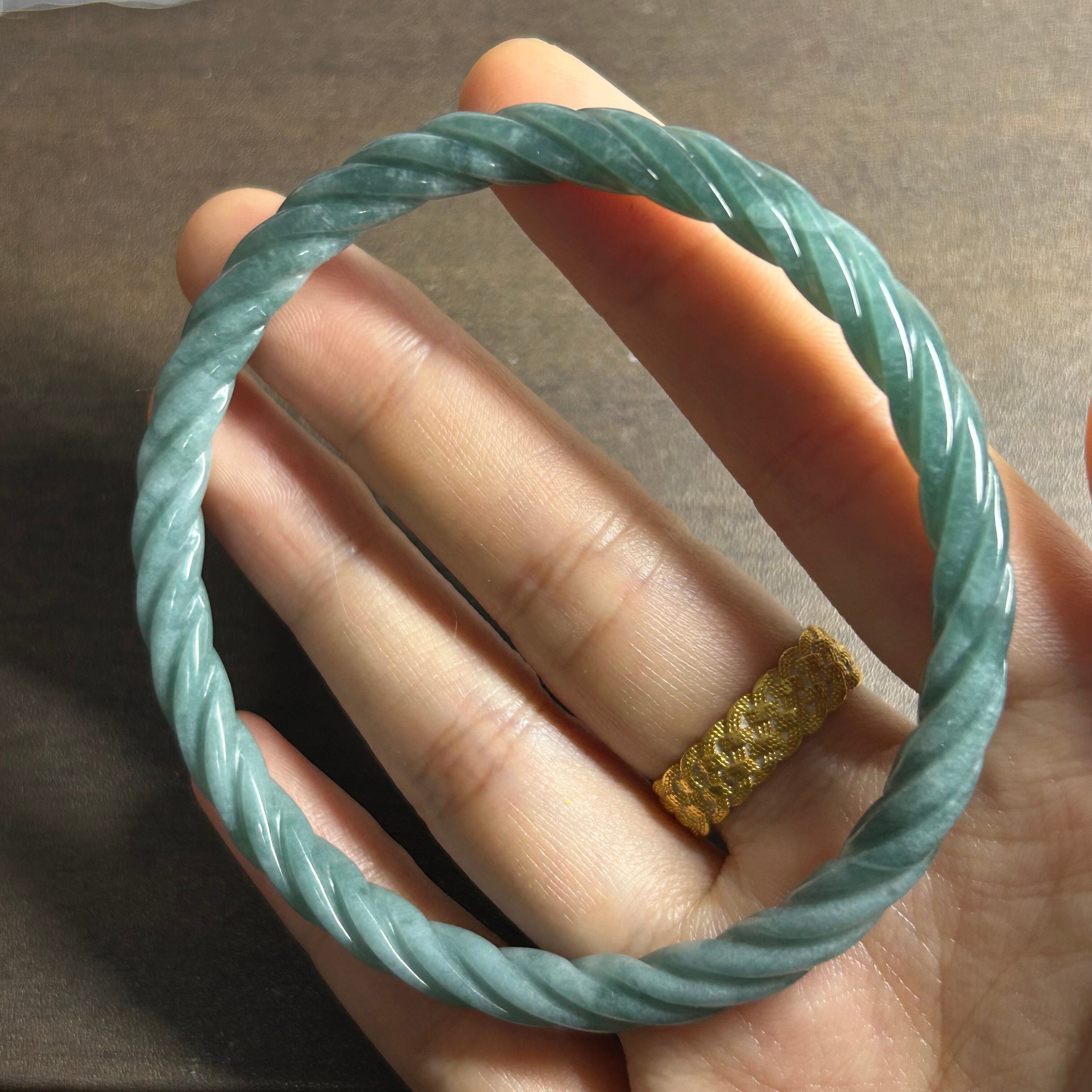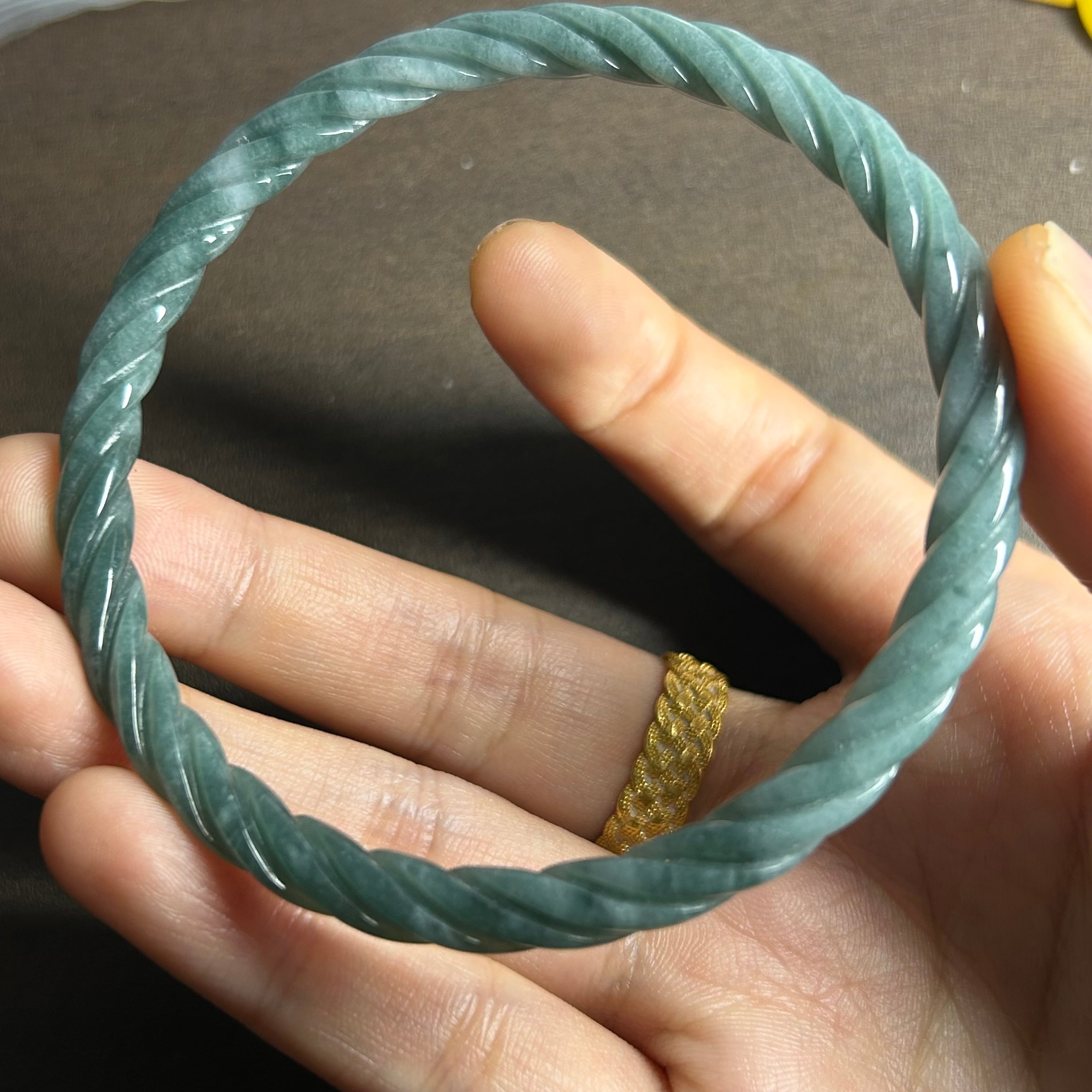 本翡翠ブレスレット バングル グァテマラ産 ねじねじ 無含浸 無着色