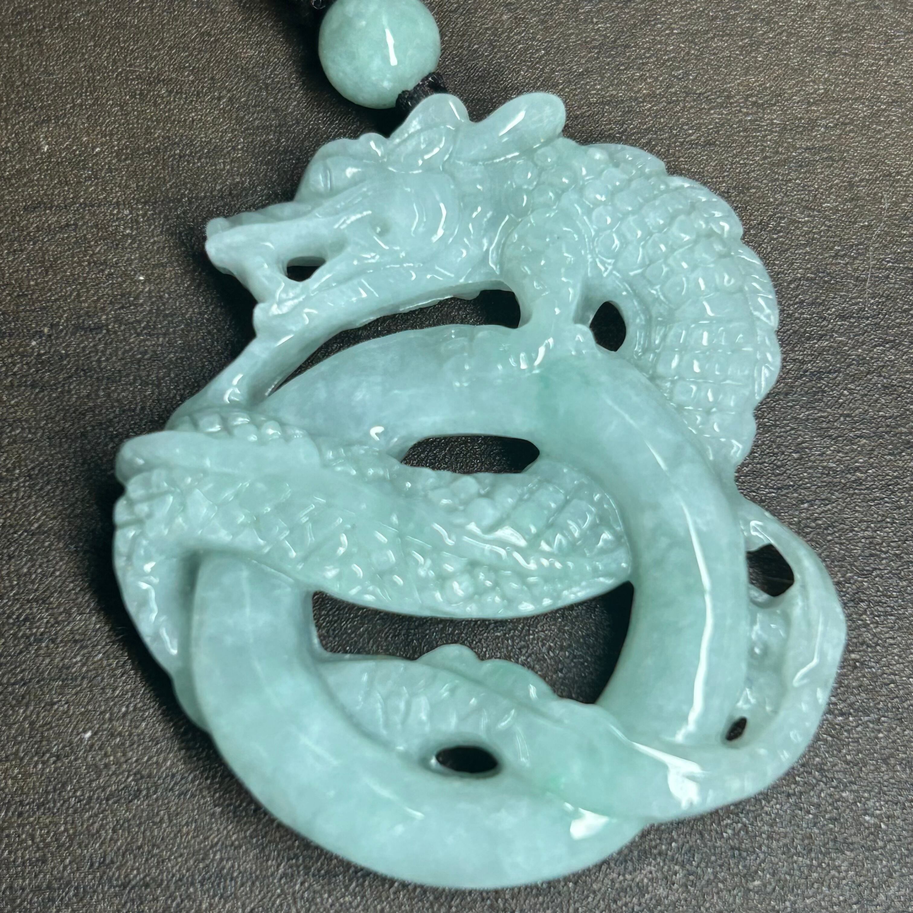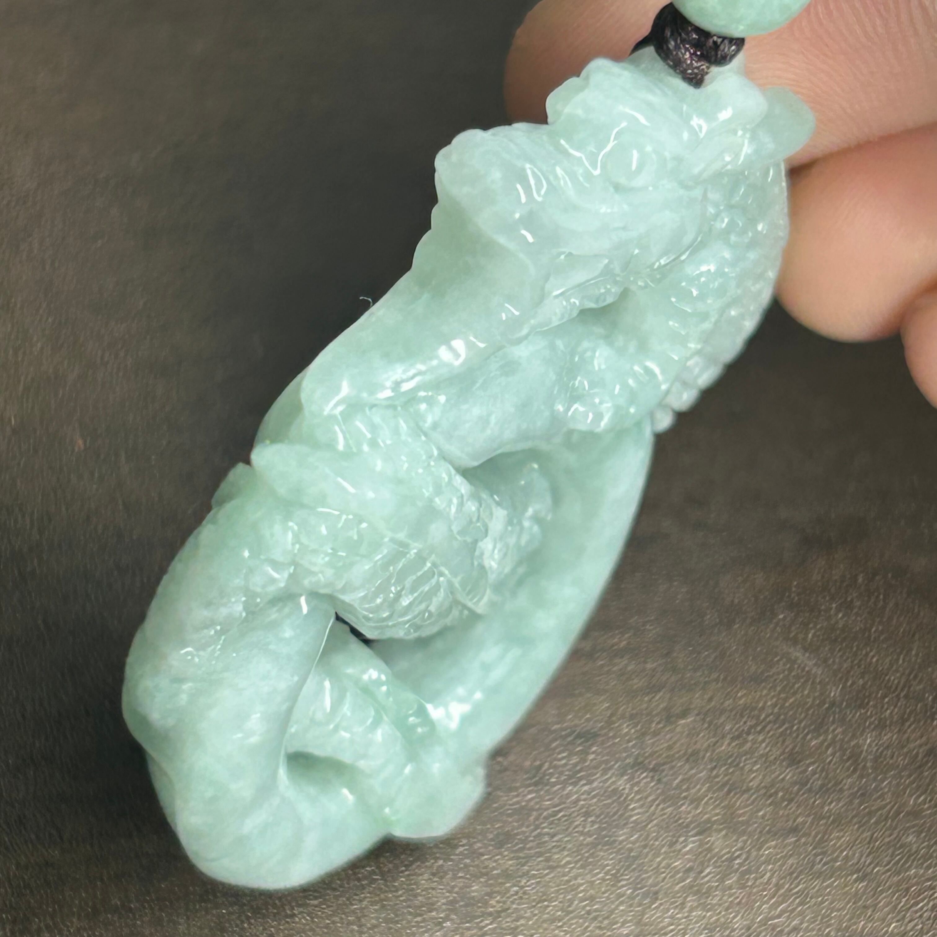 本翡翠ペンダント 辰 立体 ミャンマー産 薄い緑無含浸 無着色 りんりんしい