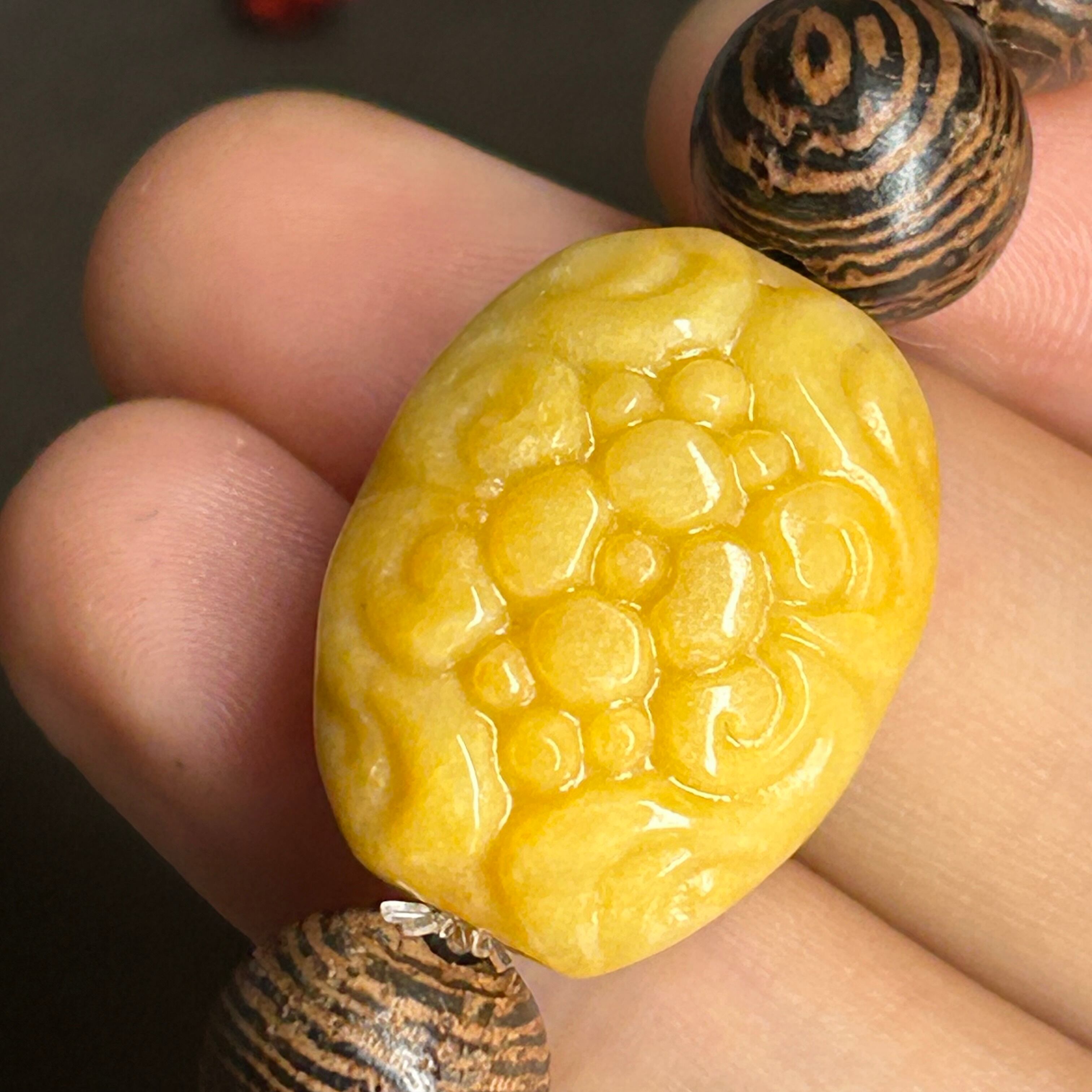クラック(地中で翡翠ができる際にできるひび)やインクルージョン(内包物)、結晶 による微細な凹凸などがある場合がございますが、天然ならではの魅力としてご理解ください。