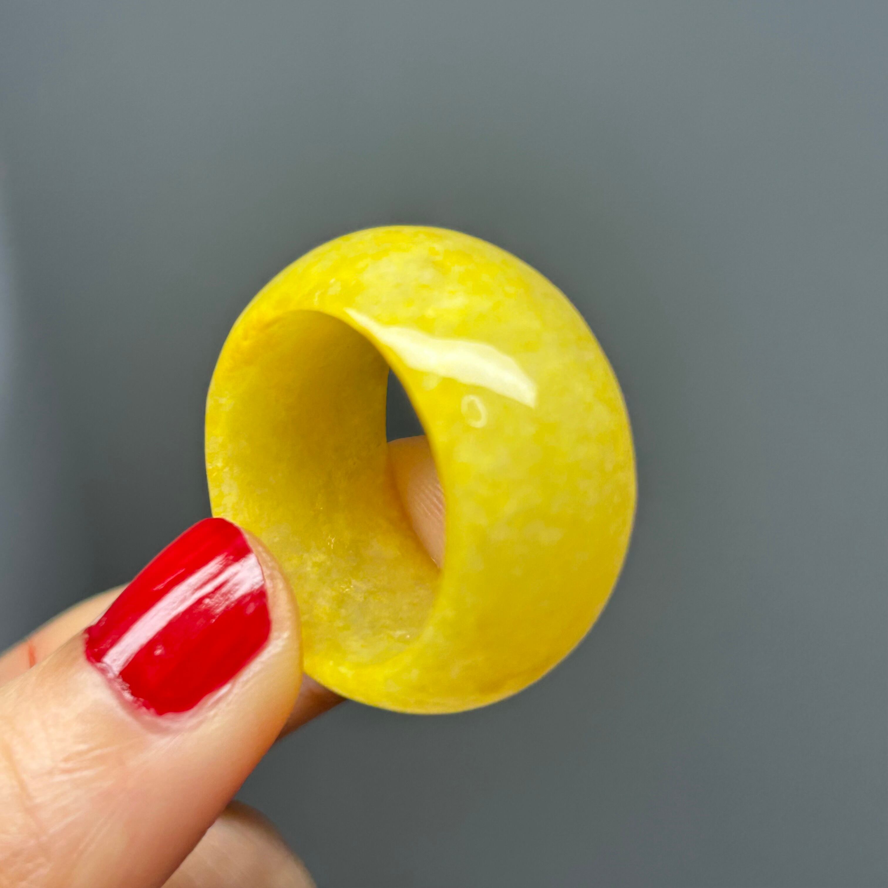 本翡翠指輪 リング 満黄 キンモクセイ色 可愛い 太め 男女兼用
