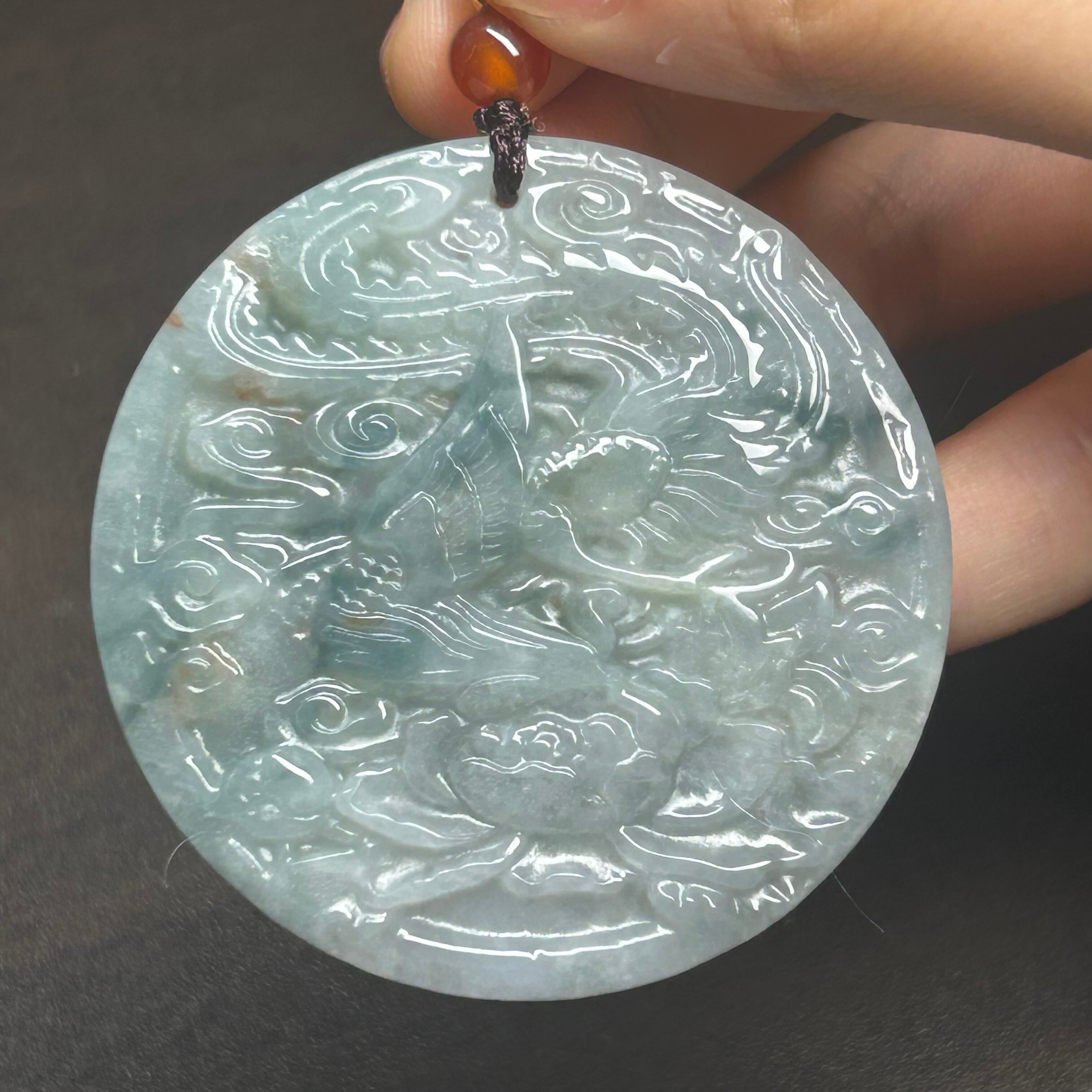 本翡翠ペンダント フェニックス ミャンマー産 藍花 無含浸 無着色 彫刻