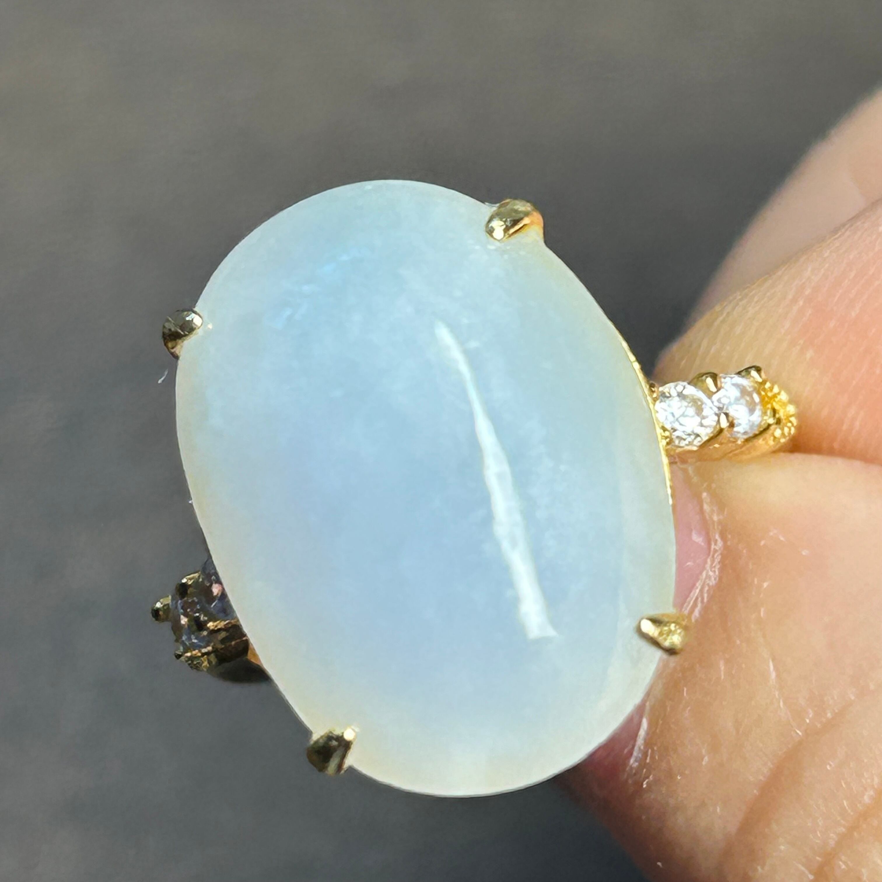 ●翡翠は光線によって、違いが出やすい宝石ですので、違う光線の下で見た感じが少し違います。あらかじめご了承ください。