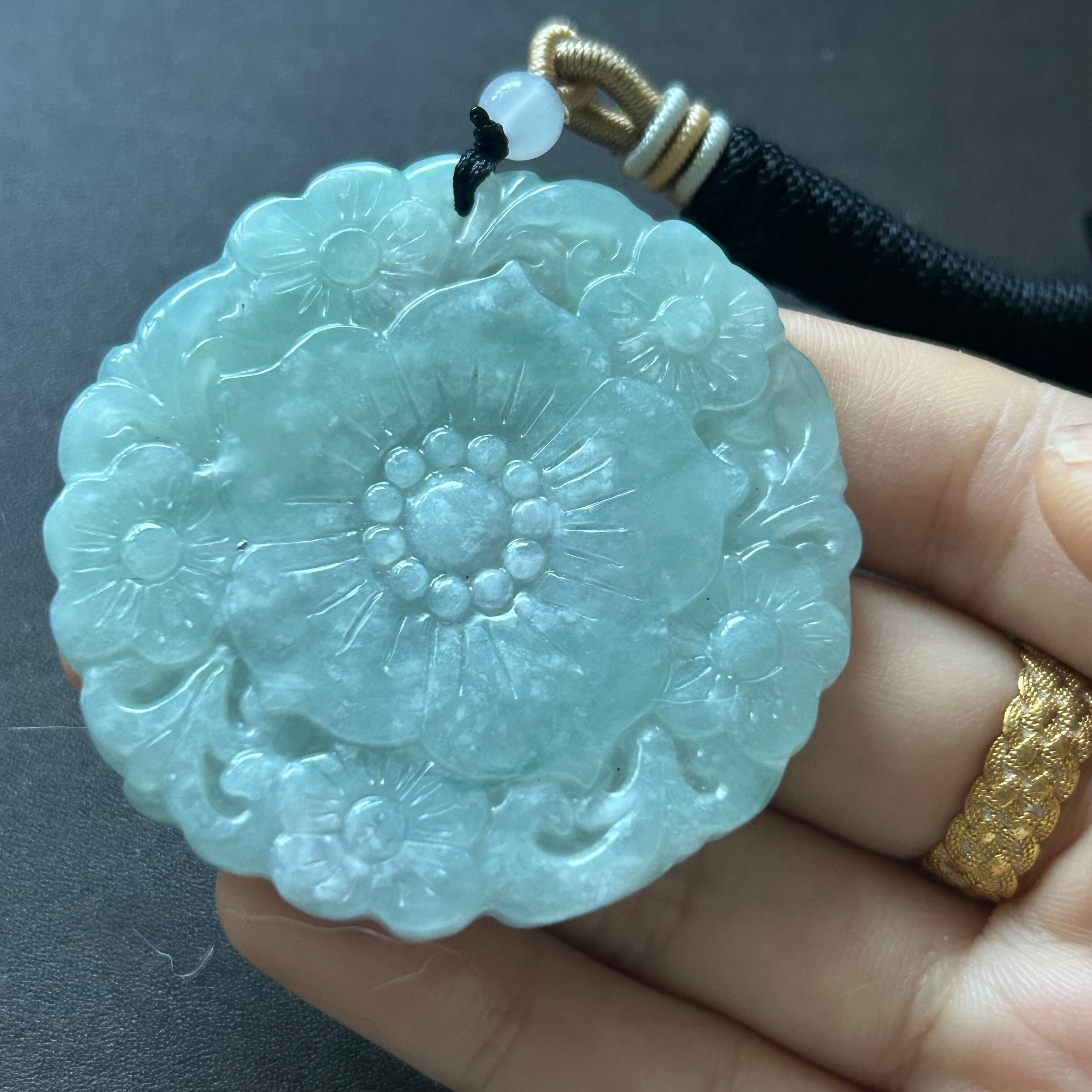 本翡翠ペンダント 可愛いお花 ミャンマー産 氷種 みずみずしい 一点限定