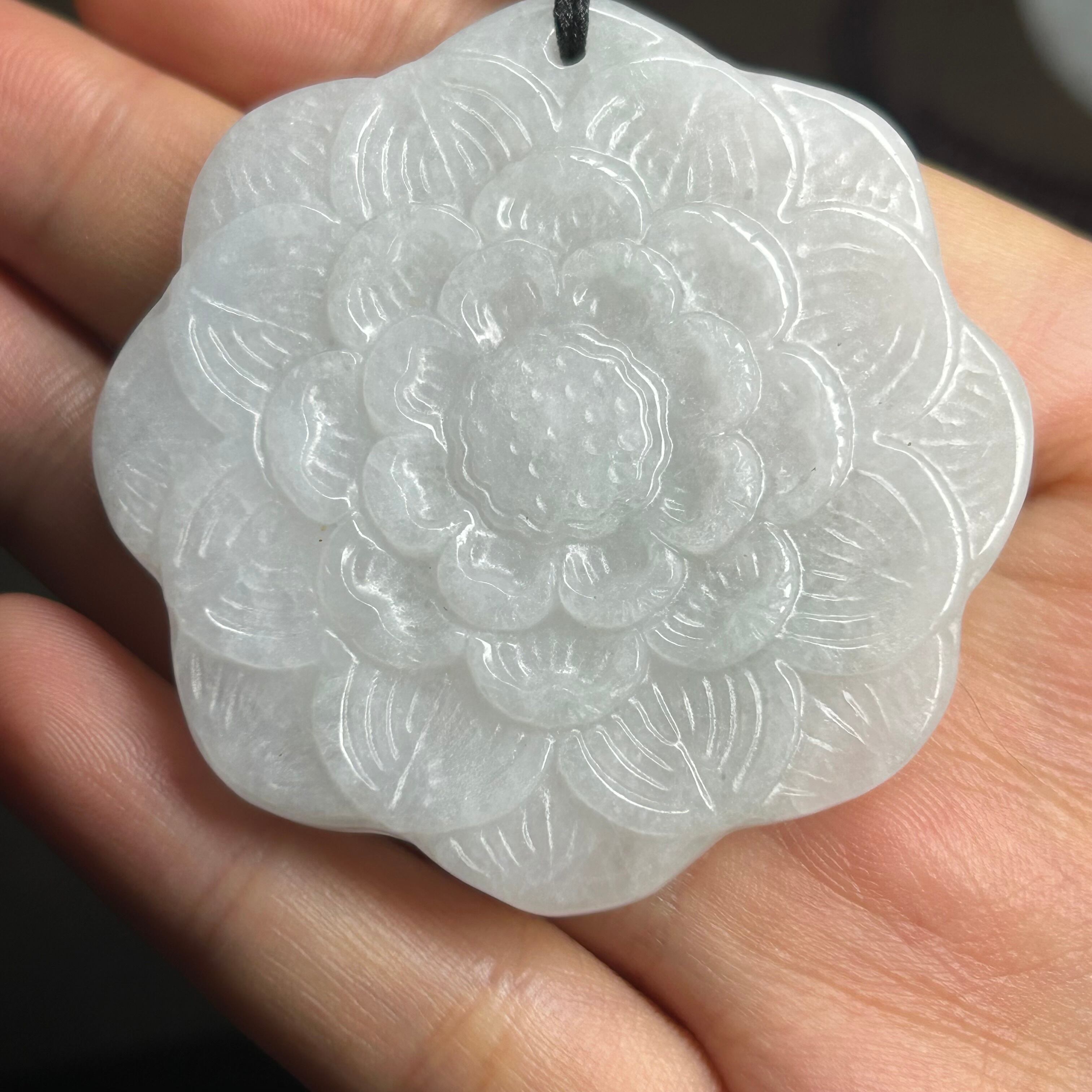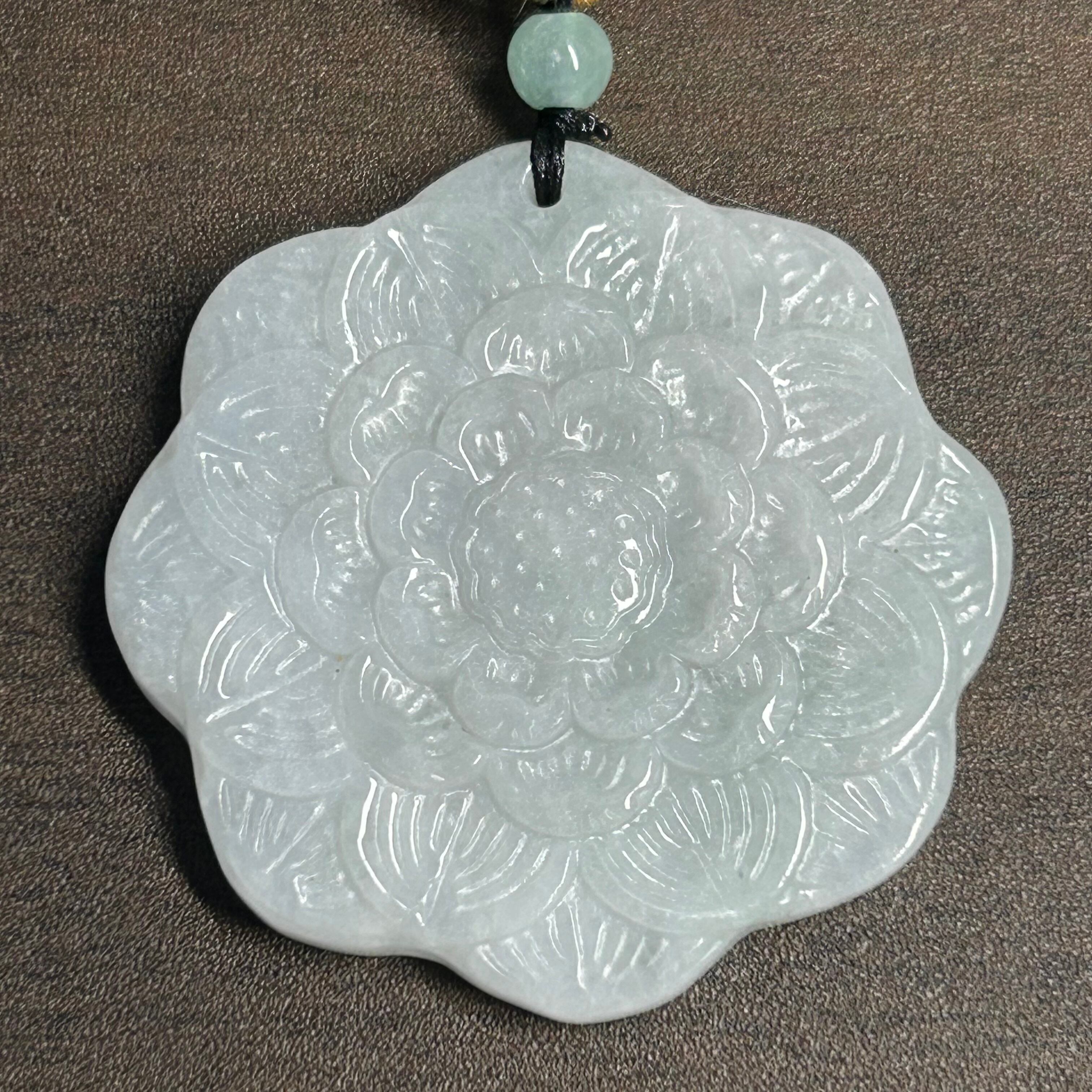 本翡翠ペンダント ひまわり 可愛い ミャンマー産 白 無含浸 無着色