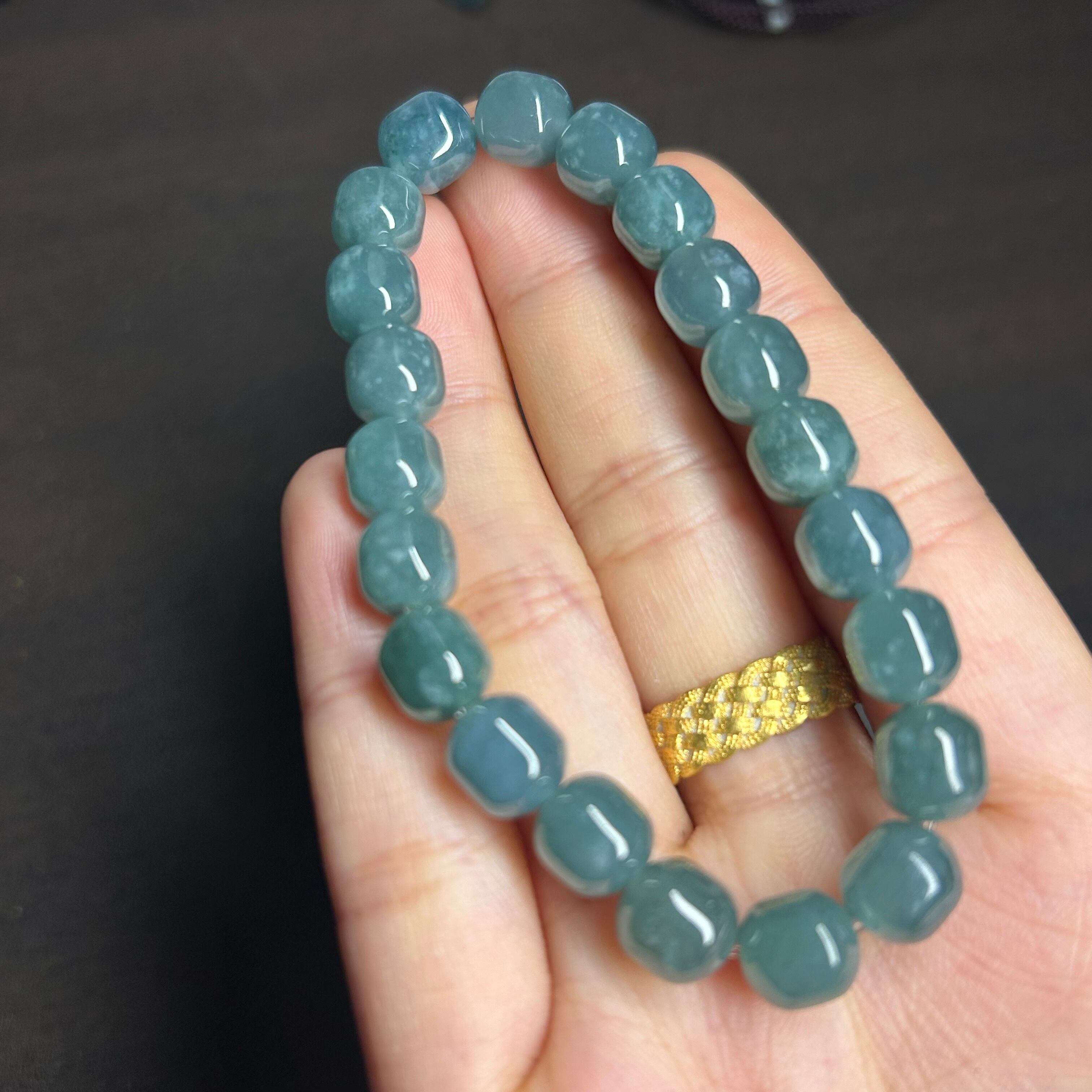 本翡翠ブレスレット グァテマラ産 氷種 みずみずしい 無含浸 無着色 お買い得