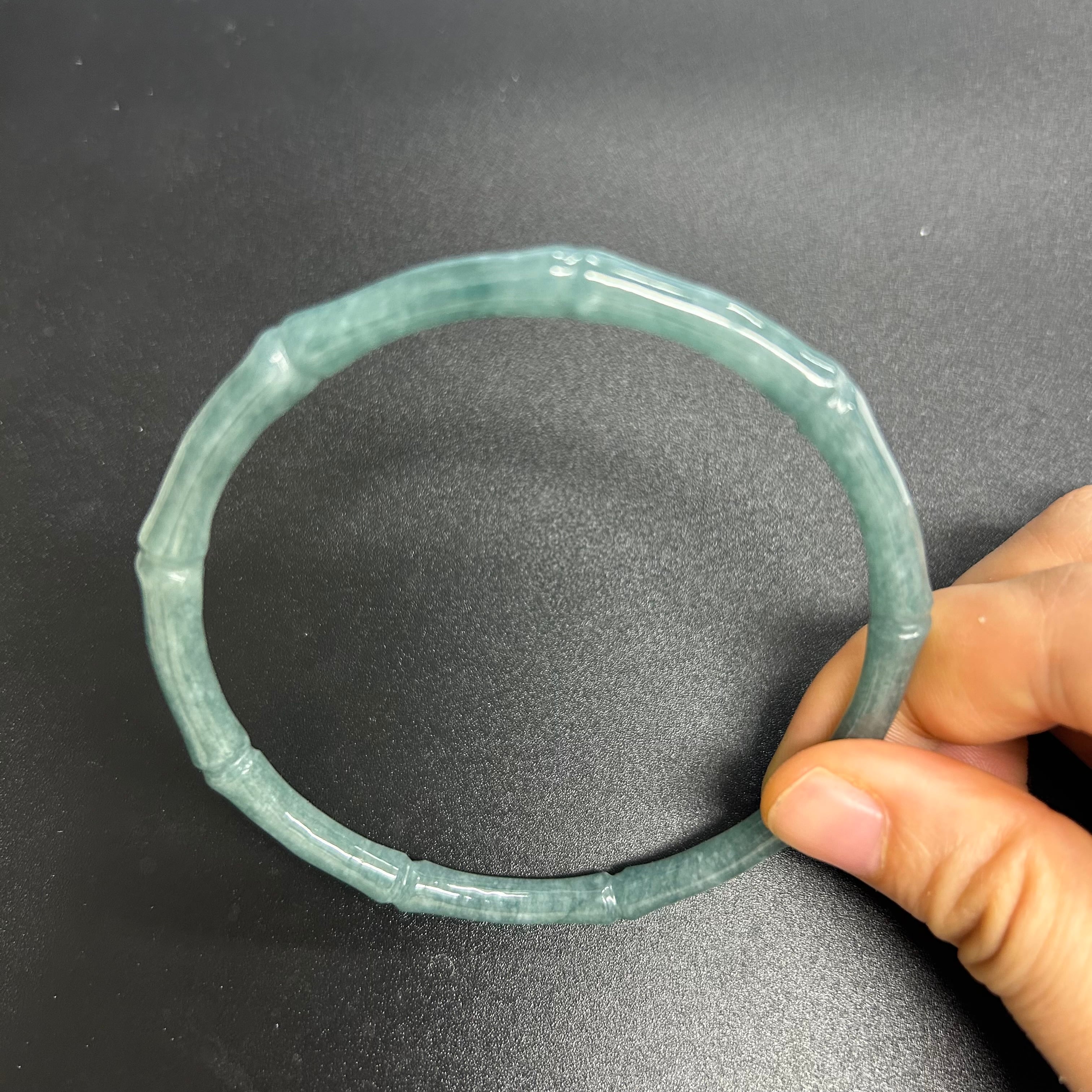 本翡翠ブレスレット バングル グァテマラ産 みずみずしい 竹模様 可愛い 上品