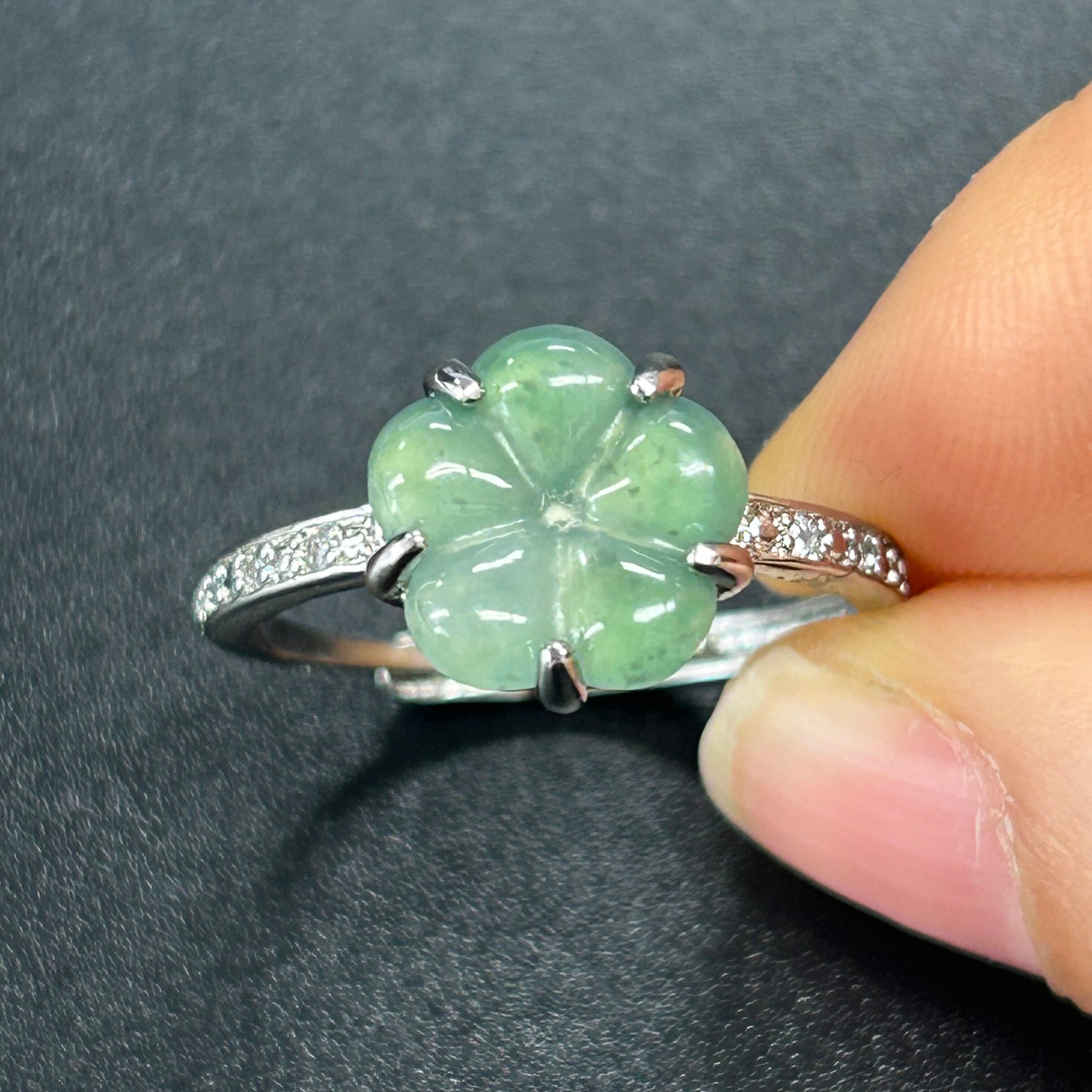 本翡翠指輪 リング 小花 無含侵 無着色 氷種 可愛い グァテマラ産