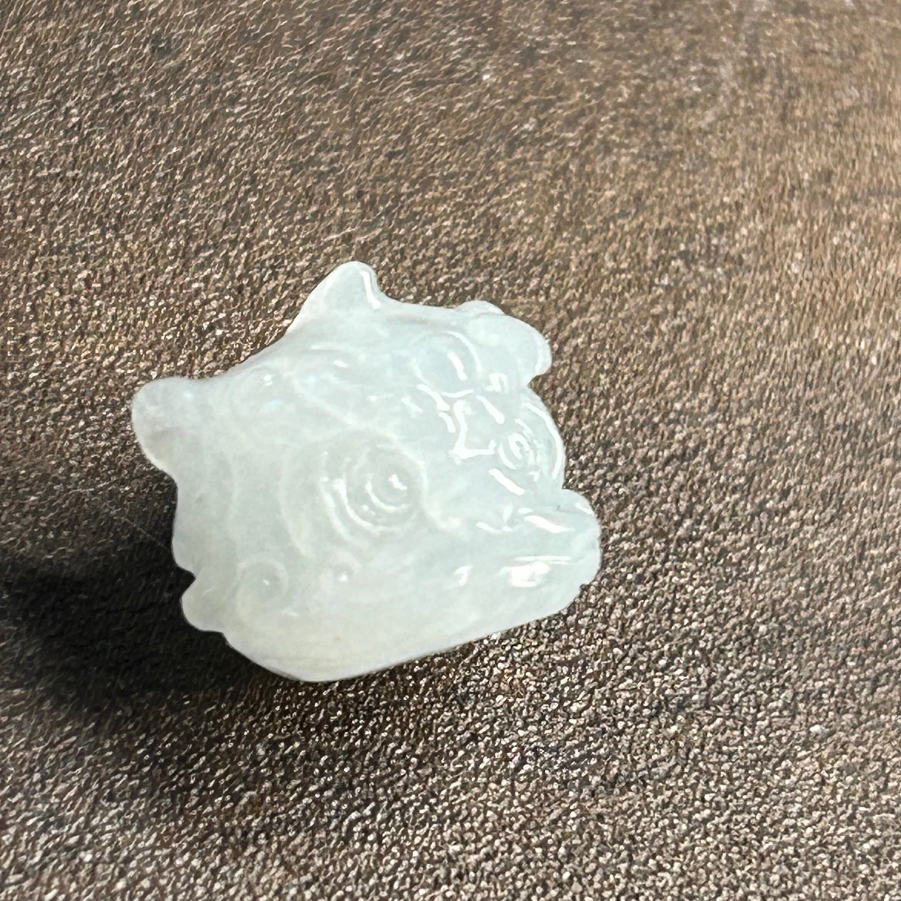 本翡翠玉 獅子模様 貫通穴 彫刻 立体 ミャンマー産 みずみずしい お買い得 無含浸 無着色 数量限定