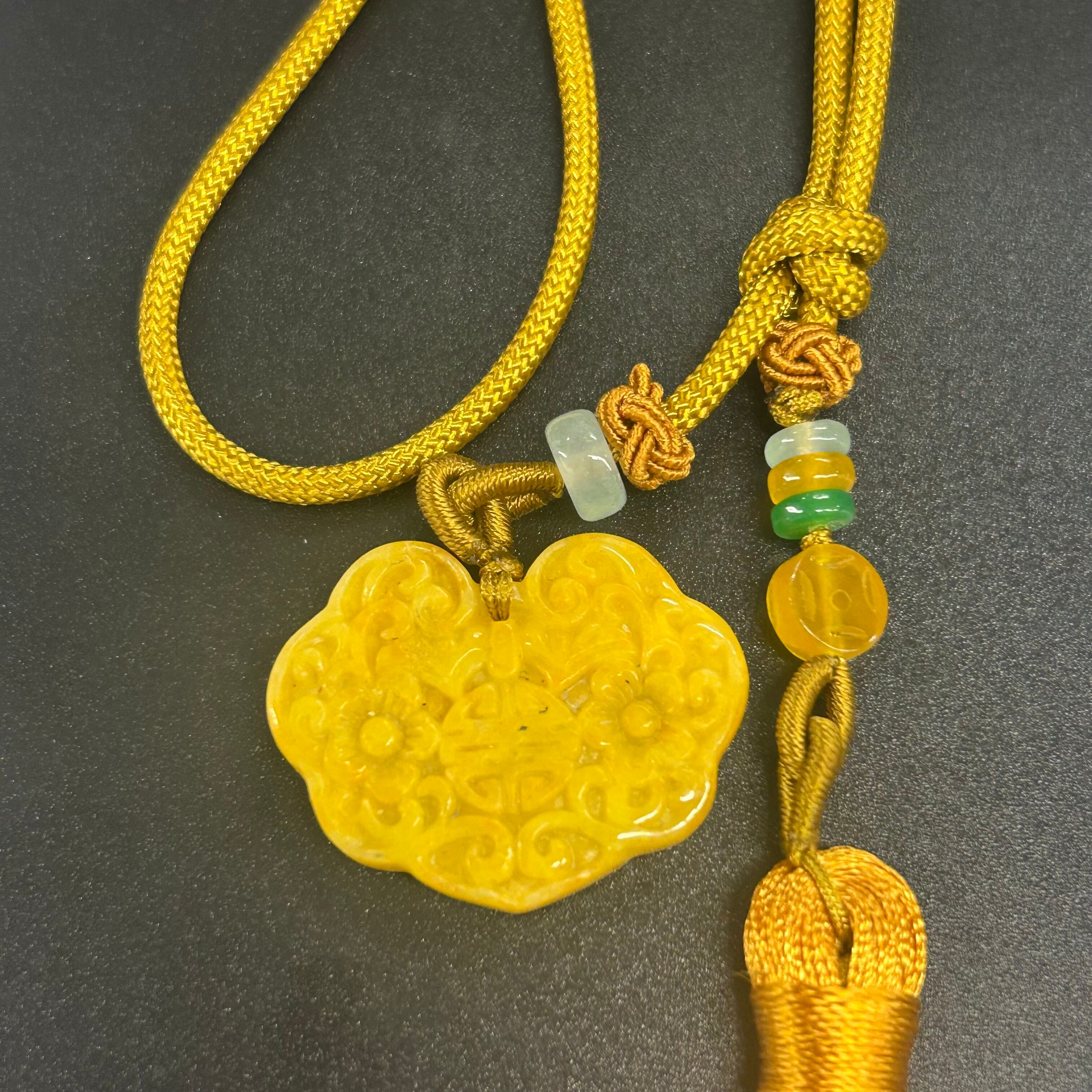 本翡翠カバン飾り ミャンマー産 鎖模様 満黄色 可愛い 一点限定