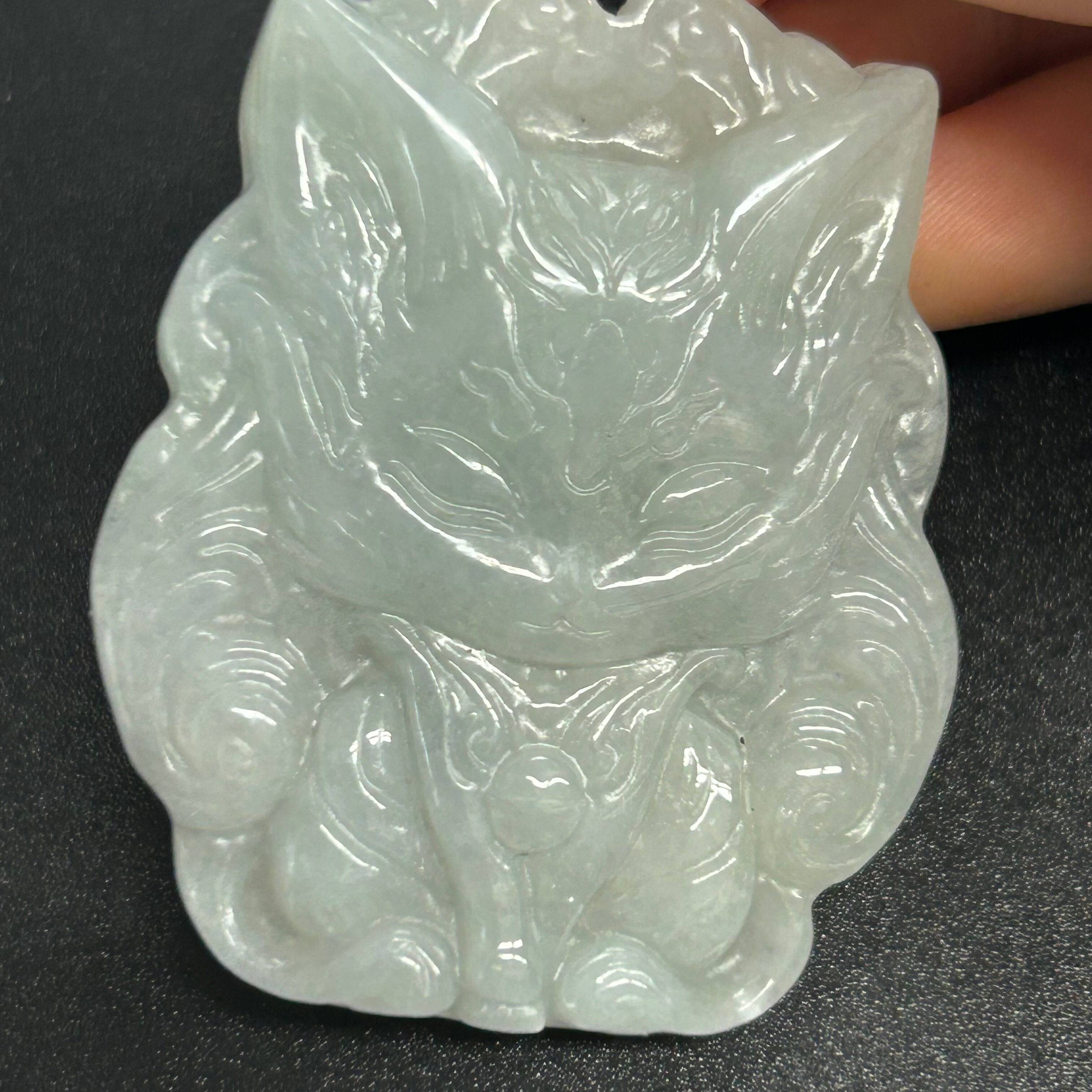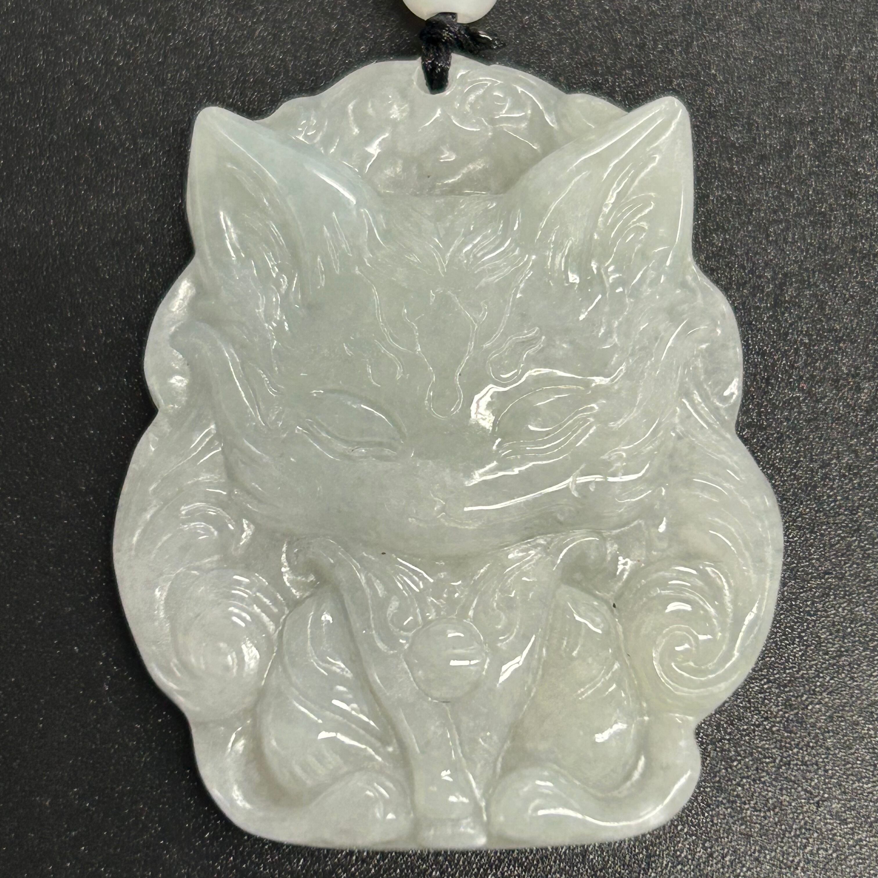 本翡翠ペンダント 可愛いキツネ ミャンマー産 みずみずしい 一点物 お買い得