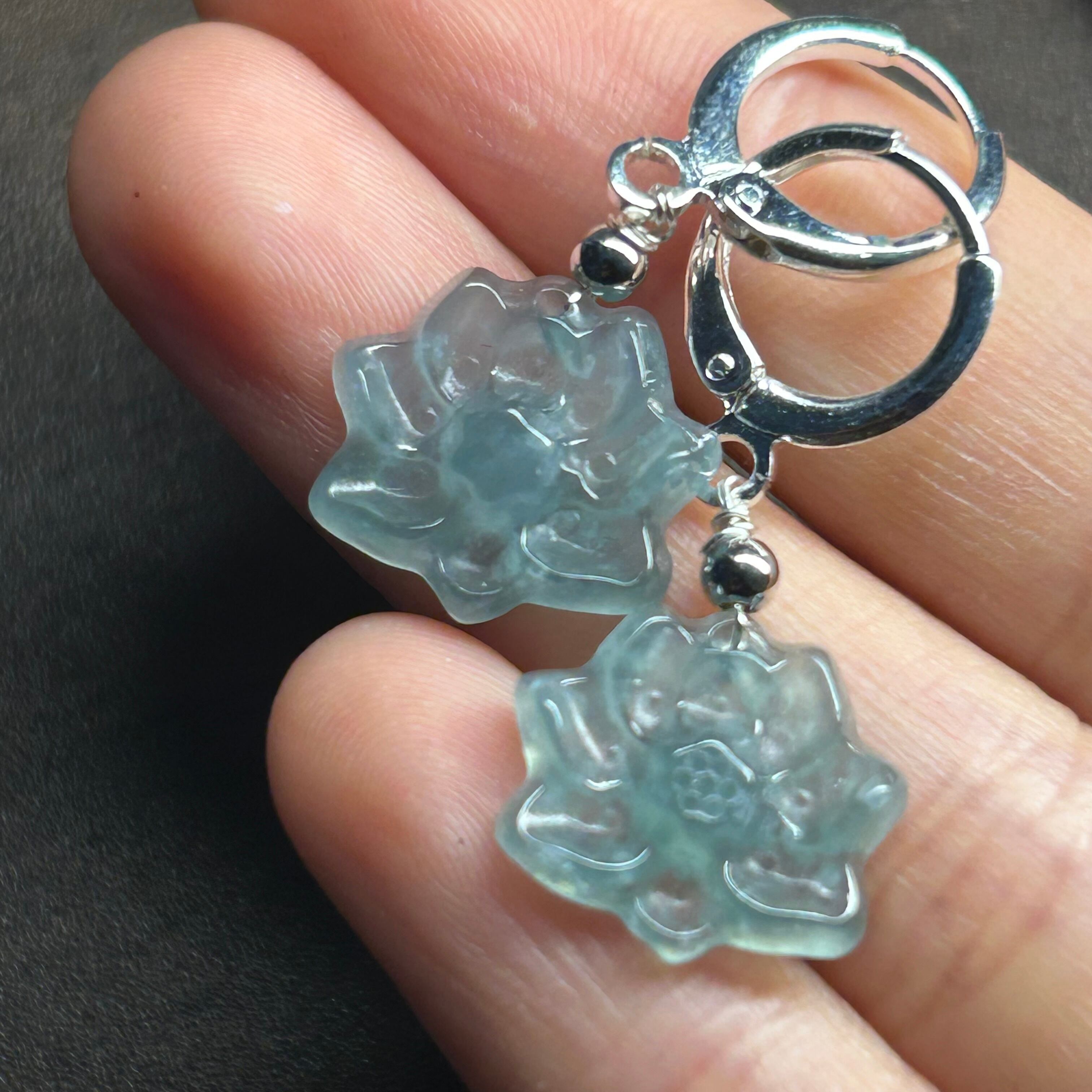 本翡翠ピアス 蓮の花 グァテマラ産 大人 上品 無含浸 無着色 一点限定