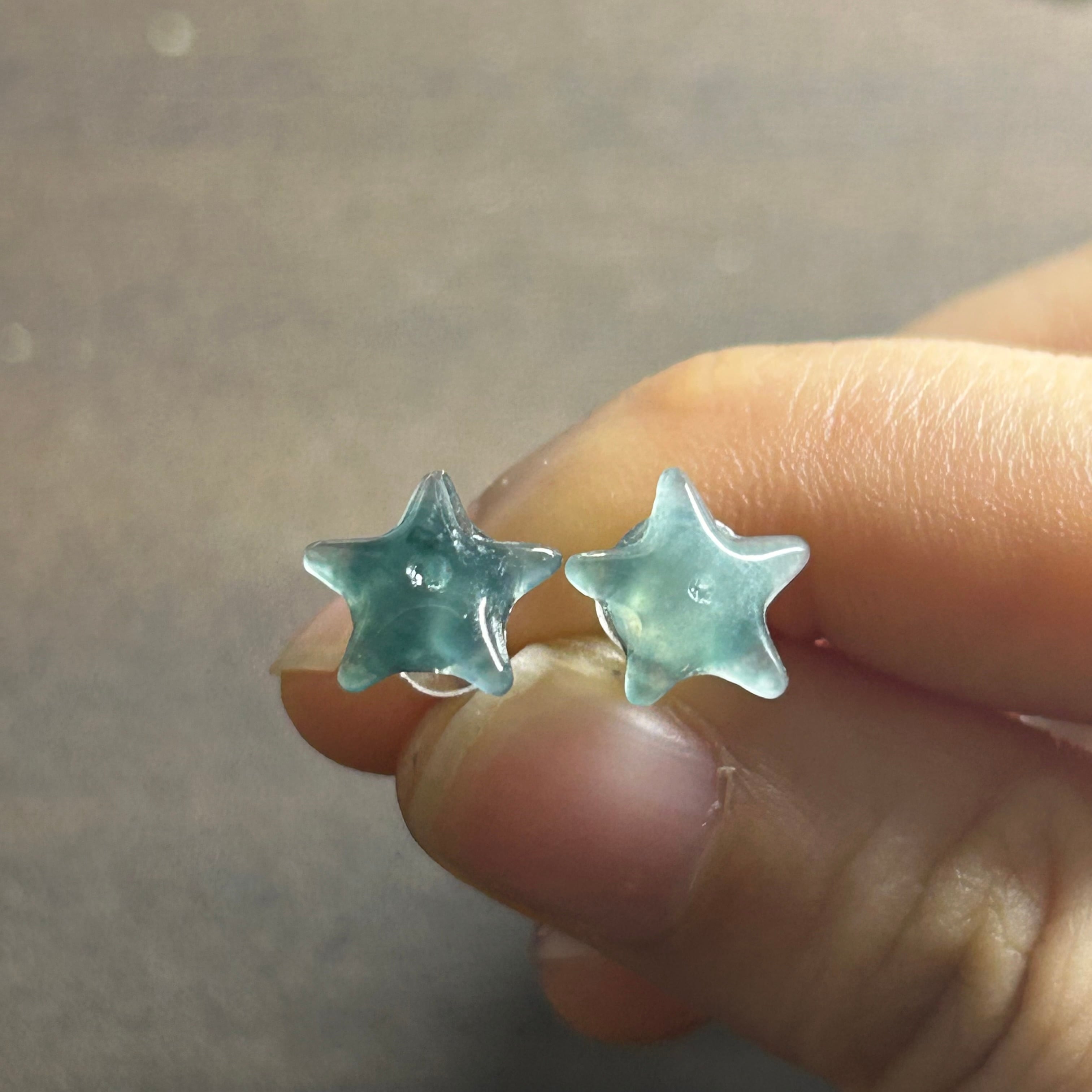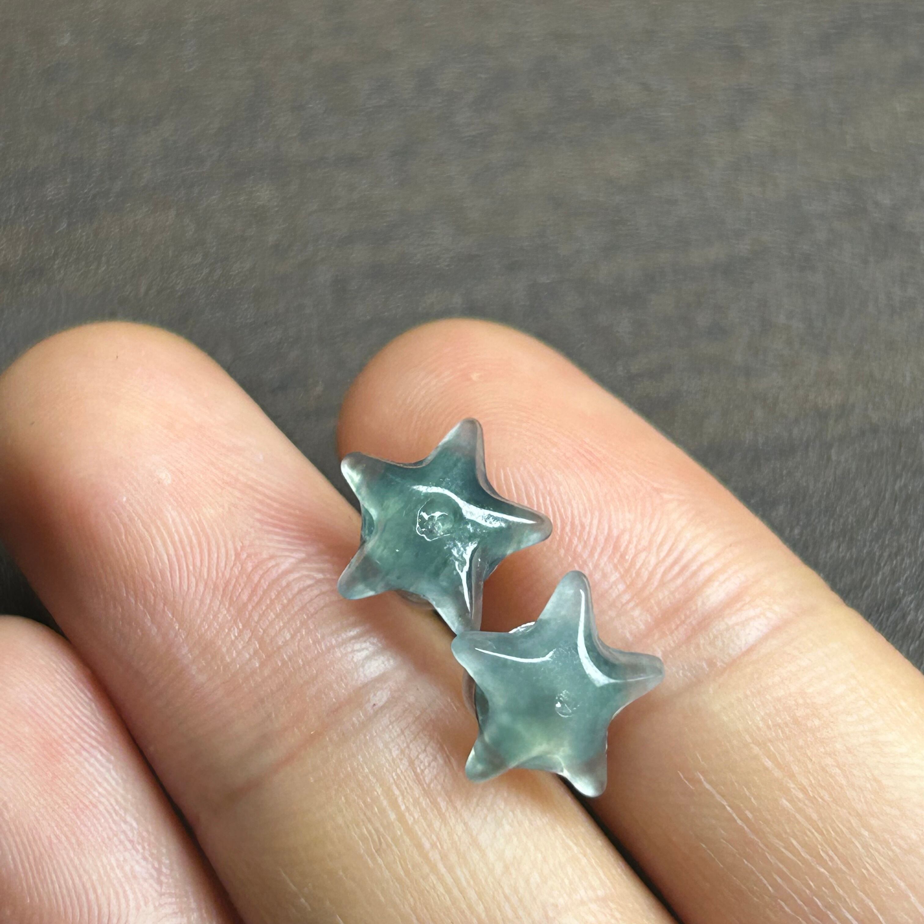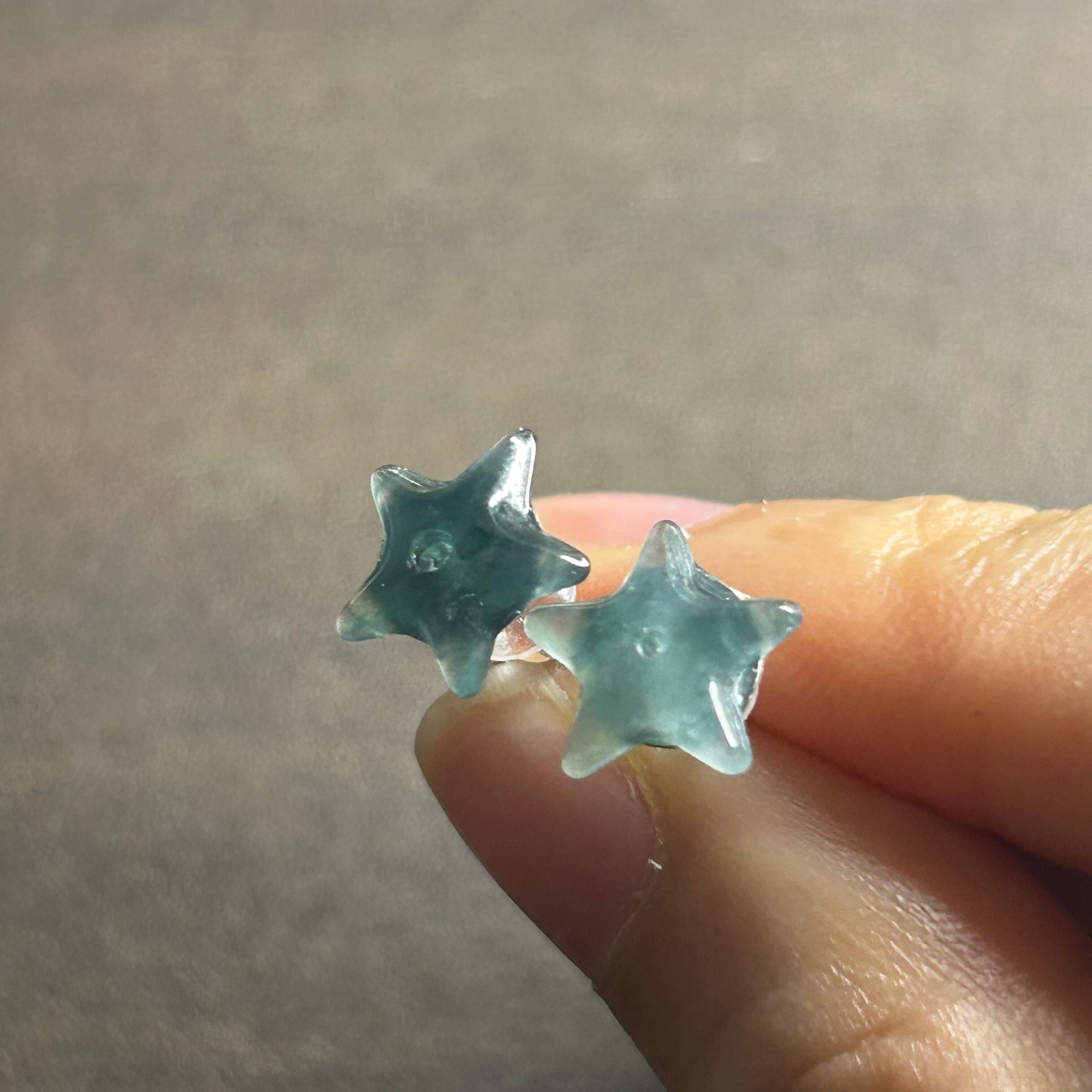 本翡翠ピアス 星 可愛い 氷種 グァテマラ翡翠 無含浸 無着色 お買い得