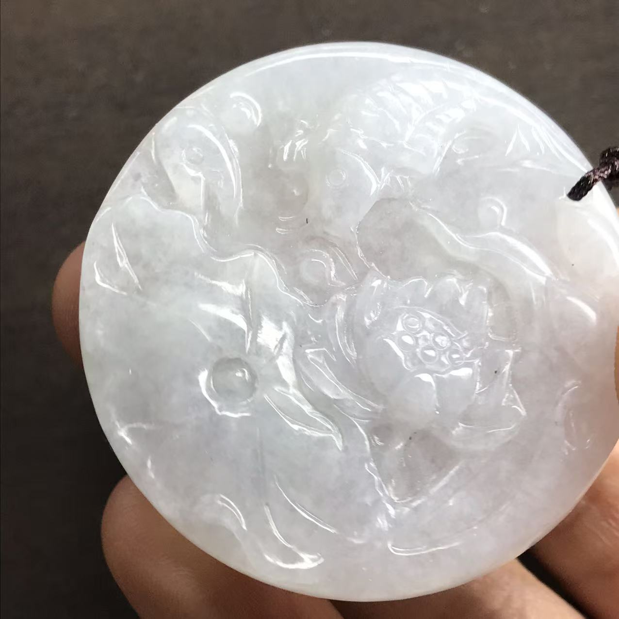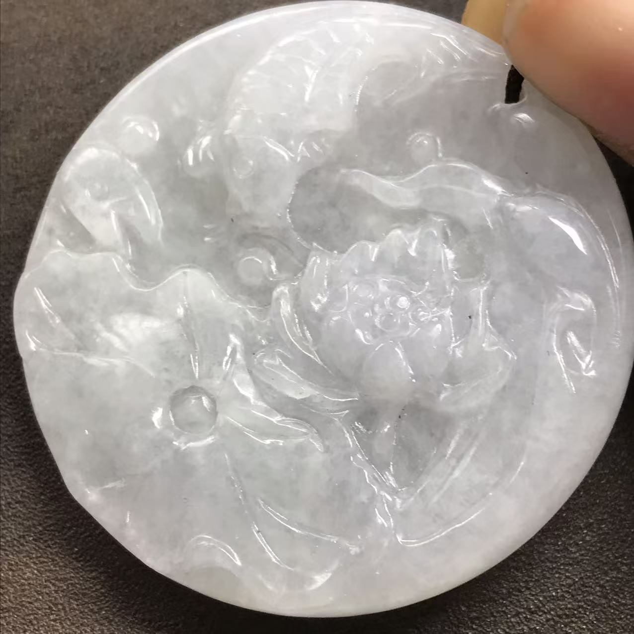 本翡翠ペンダント 蓮の花 ミャンマー産 魚 かわいい 無含浸 無着色 お買い得
