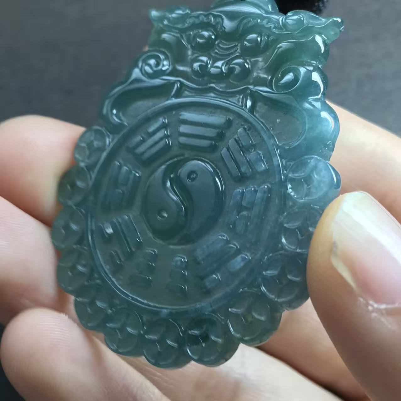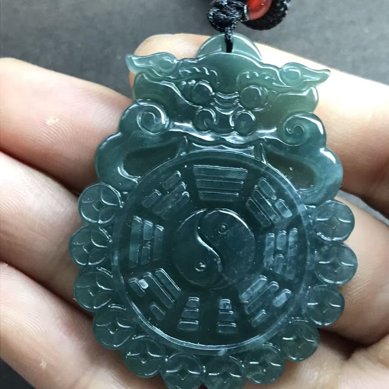 本翡翠ペンダント 八卦 グァテマラ産 氷種 訳あり 無含浸 無着色 お守り 1点物
