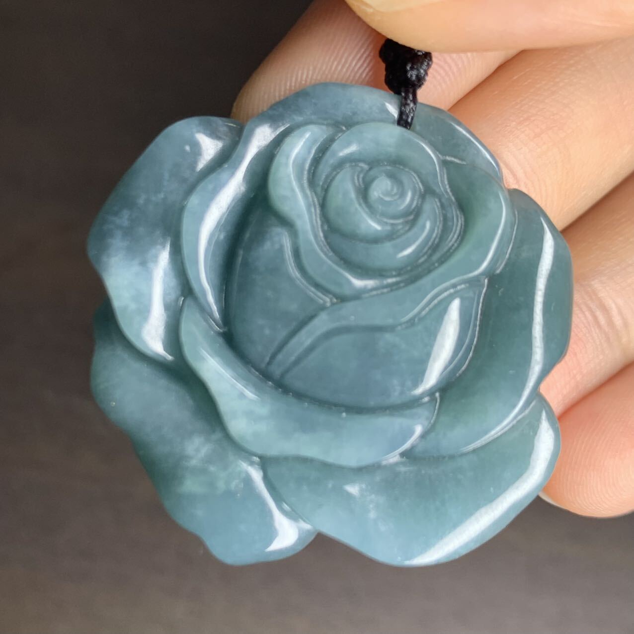 本翡翠ペンダント バラ グァテマラ産 立体模様 かわいい 無含浸 無着色 jade