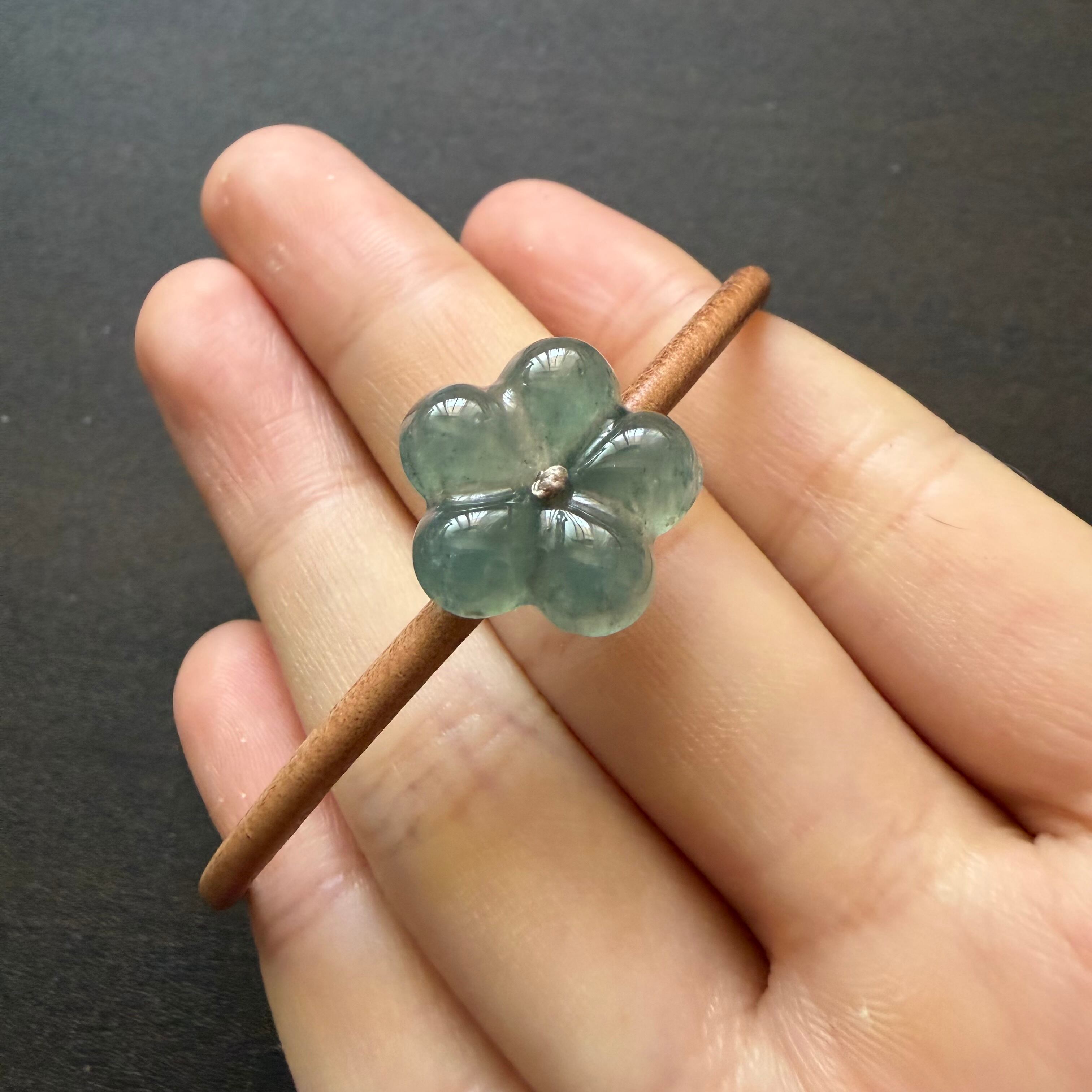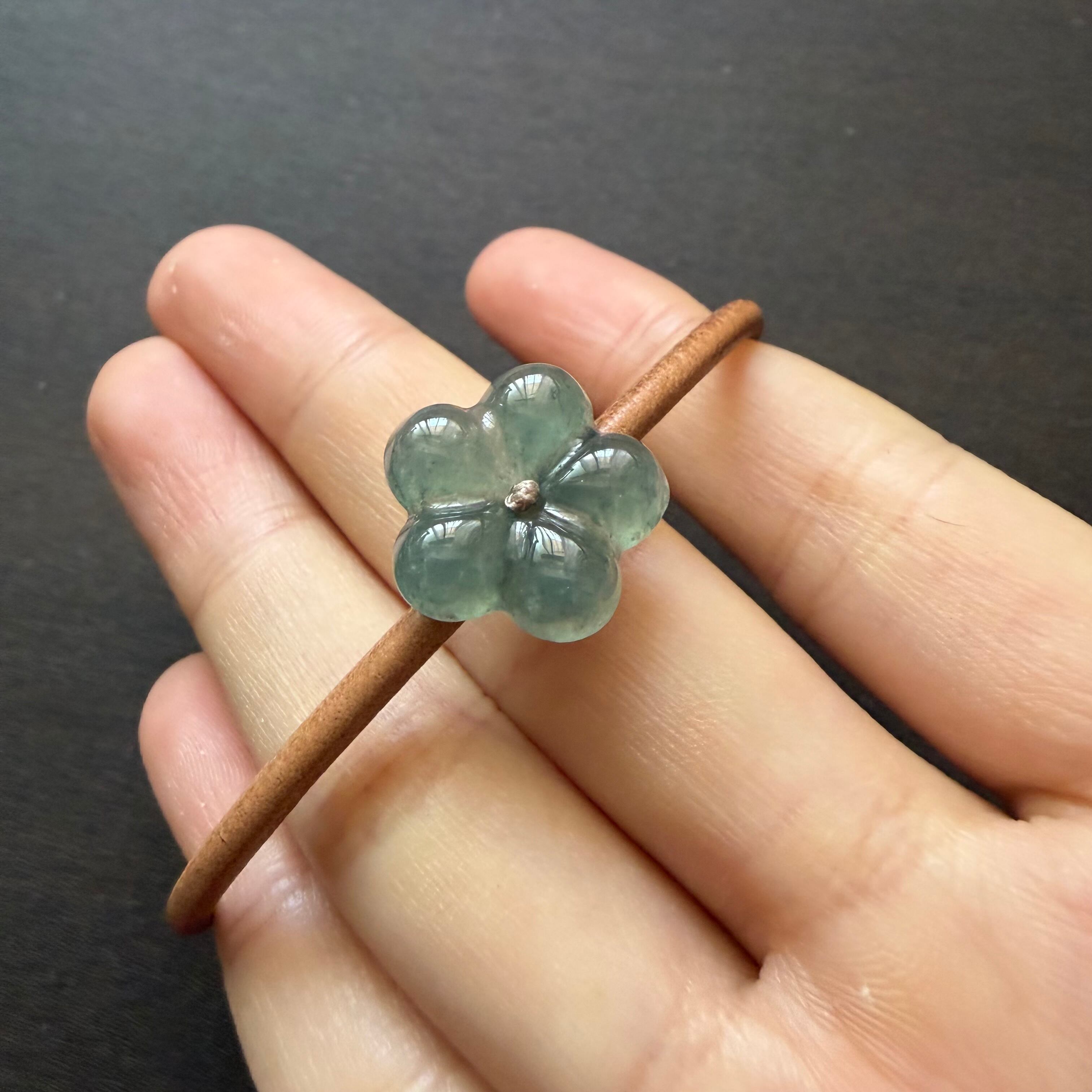 本翡翠ブレスレット 氷種 花模様 超可愛い 一点物 無含浸 無着色