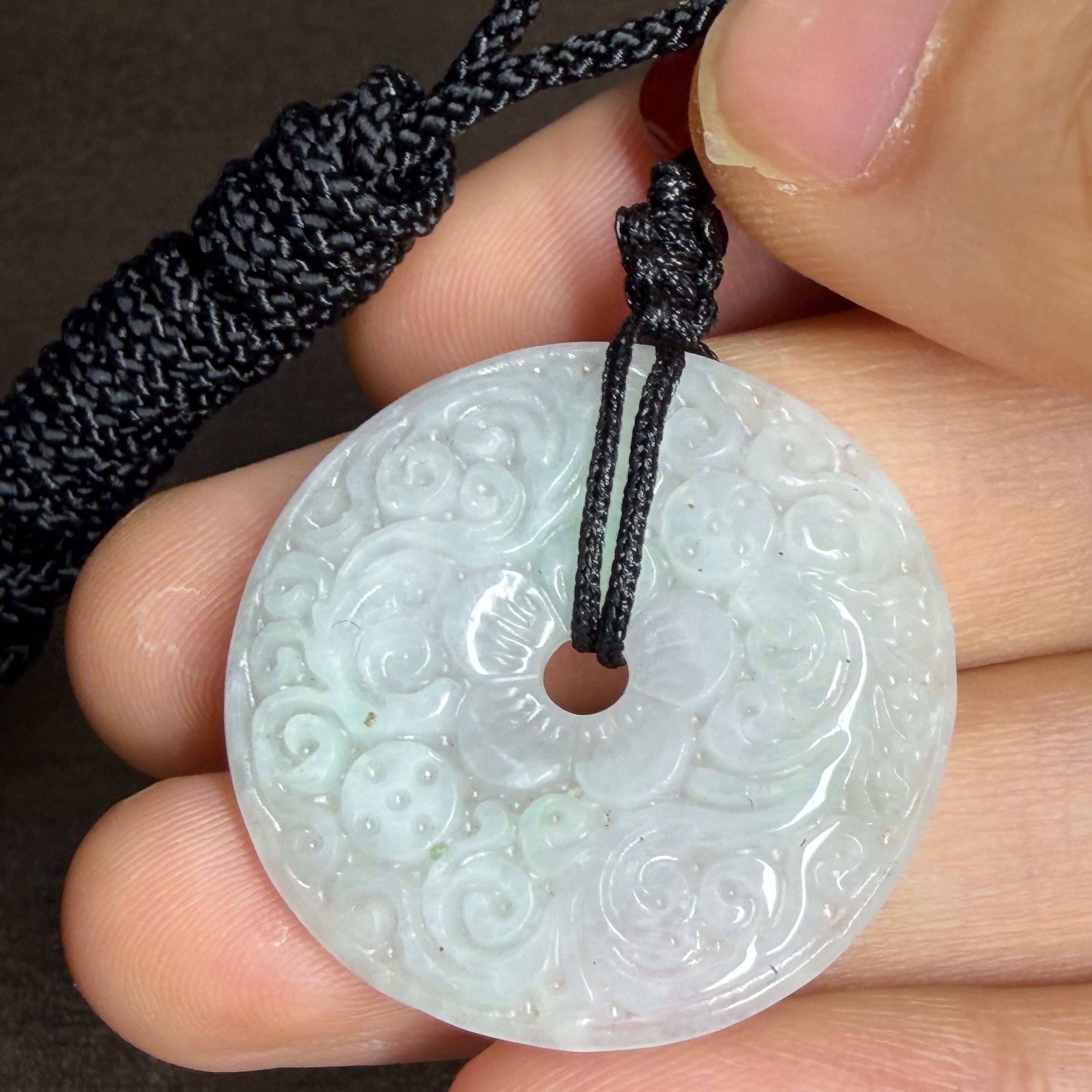 クラック(地中で翡翠ができる際にできるひび)やインクルージョン(内包物)、結晶 による微細な凹凸などがある場合がございますが、天然ならではの魅力としてご理解ください。