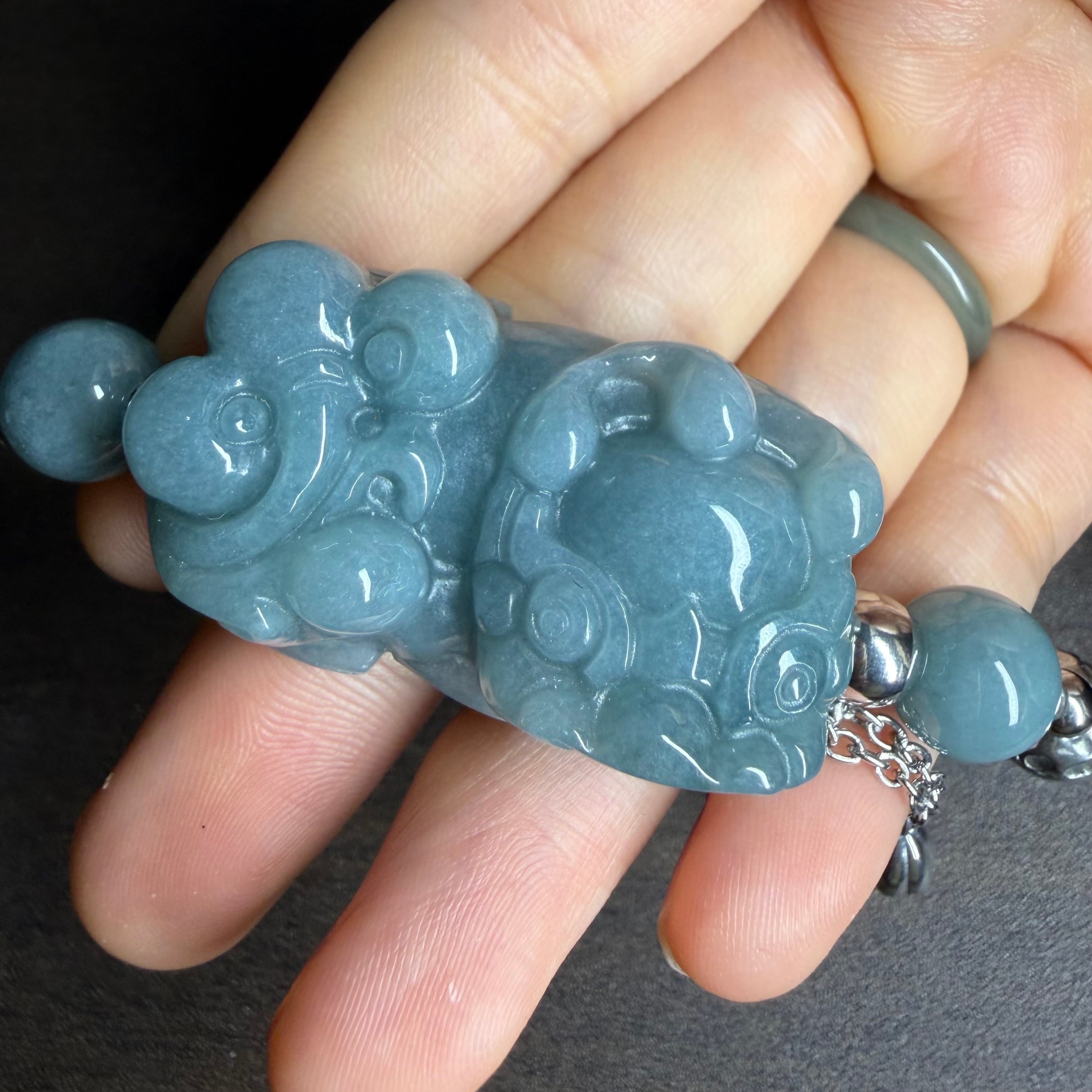 本翡翠ブレスレット 貔貅 グァテマラ産 師匠作品 可愛い 金運アップ 天然石 無含浸 無着色 男女兼用 お守り 縁起物