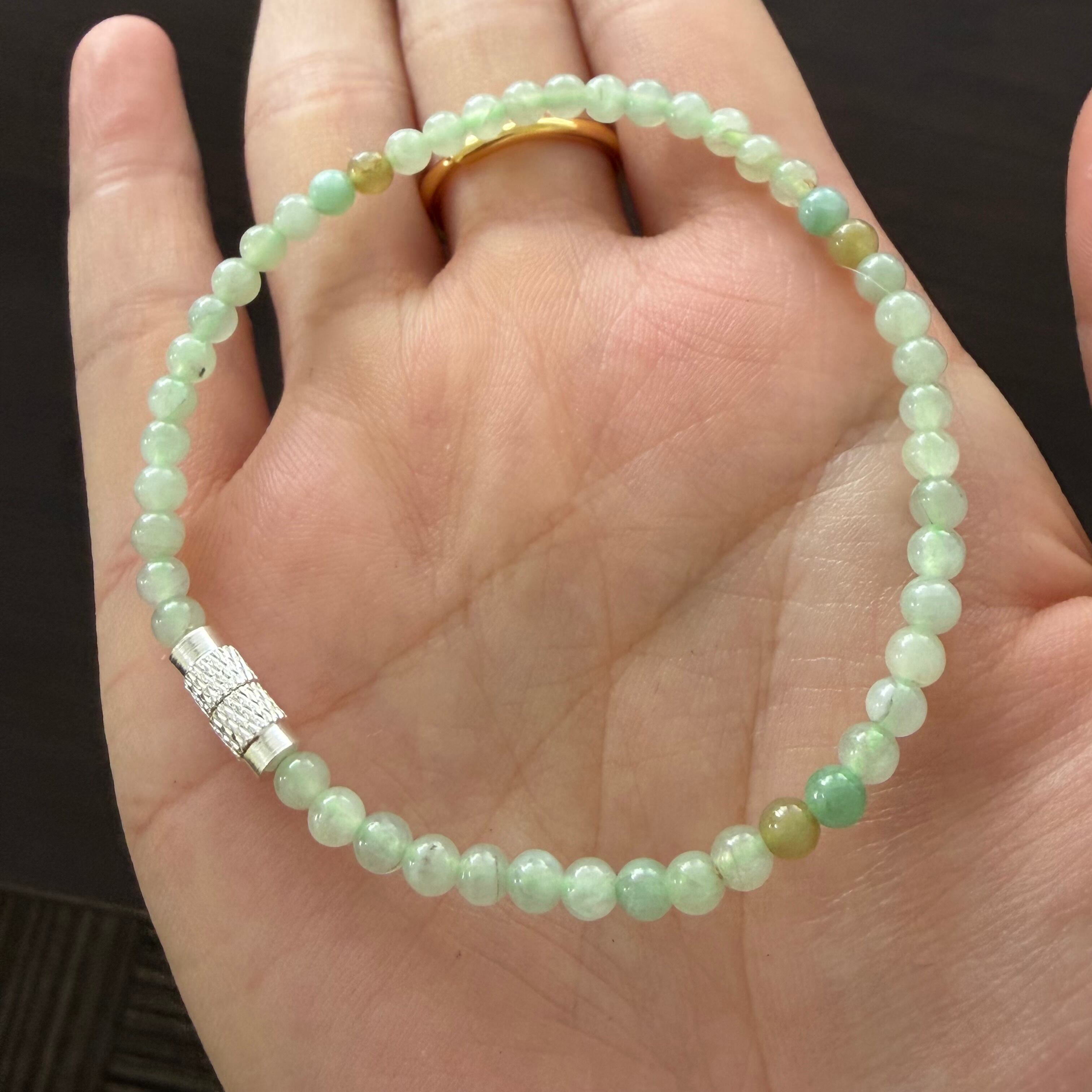 本翡翠ブレスレット ミャンマー産 氷種 一点物 かわいい 春っぽい おしゃれ 無含侵 無着色