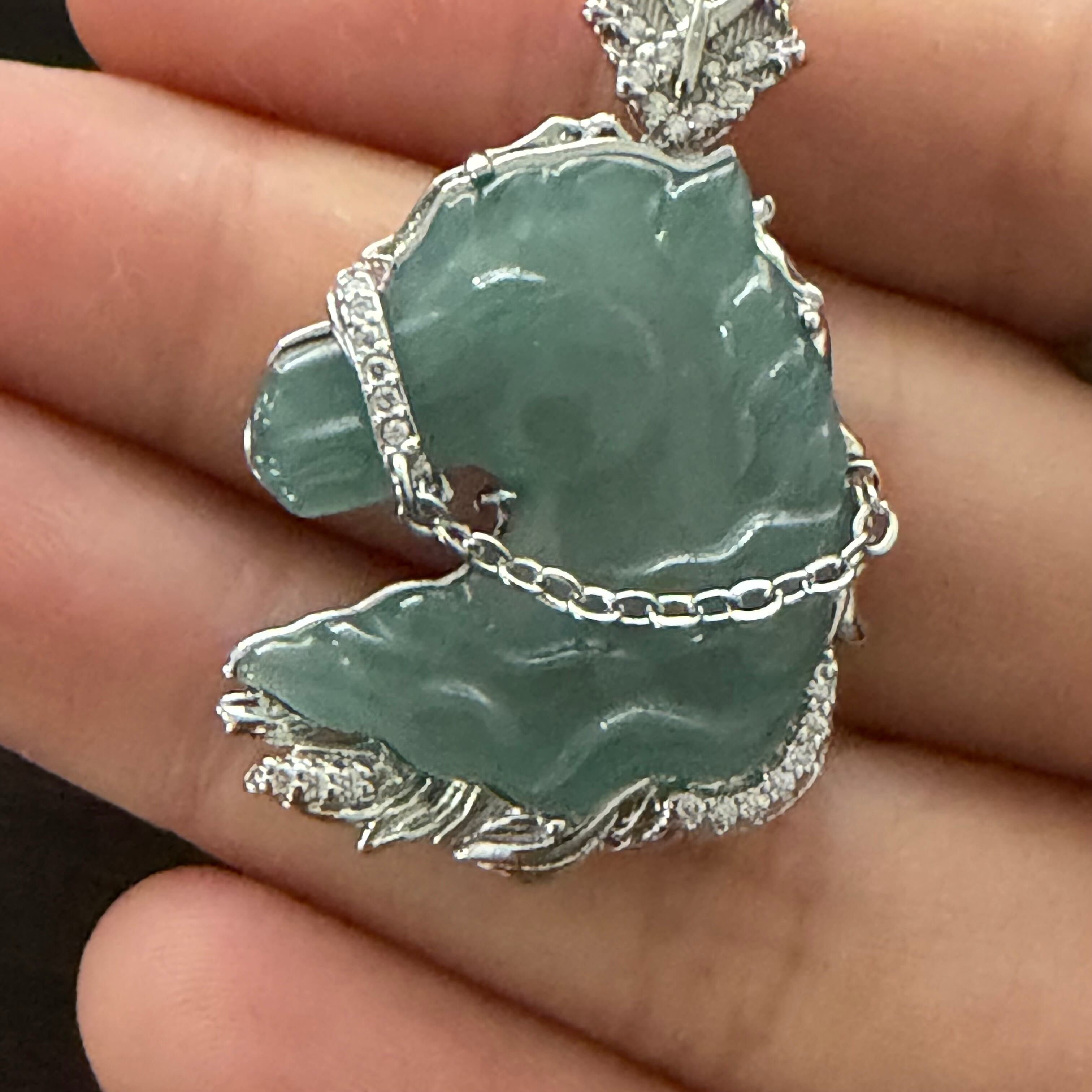 ●翡翠は光線によって、違いが出やすい宝石ですので、違う光線の下で見た感じが少し違います。あらかじめご了承ください。