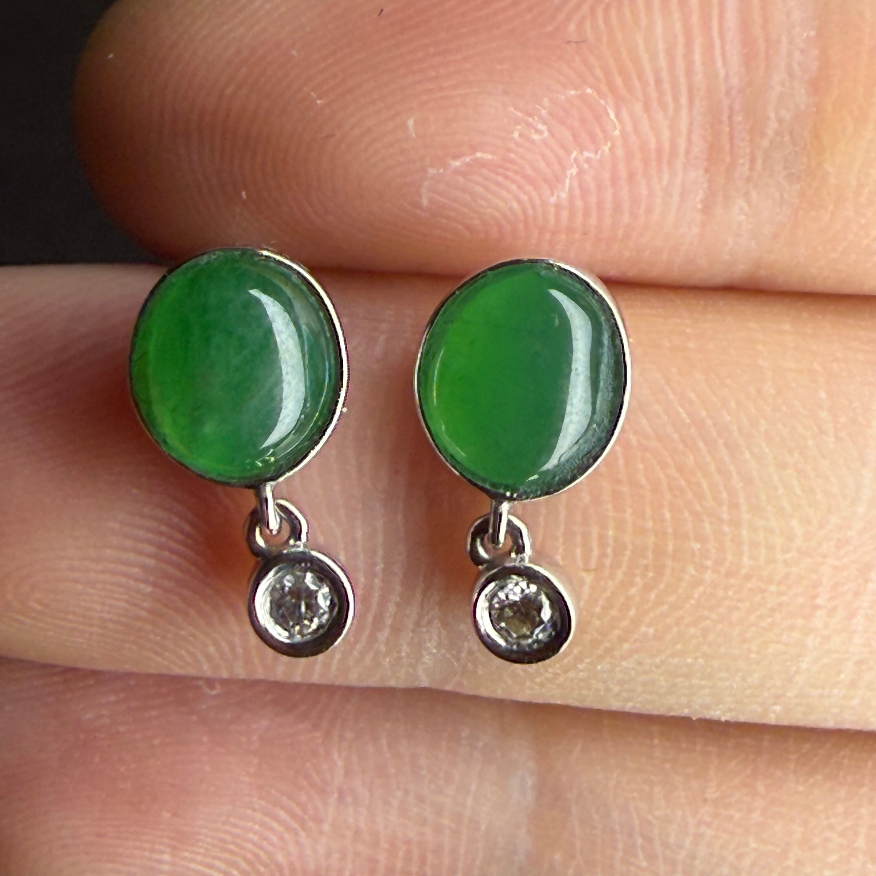 本翡翠ピアス ろうかん 陽緑 ミャンマー産 18金 ダイヤ 無含浸 無着色