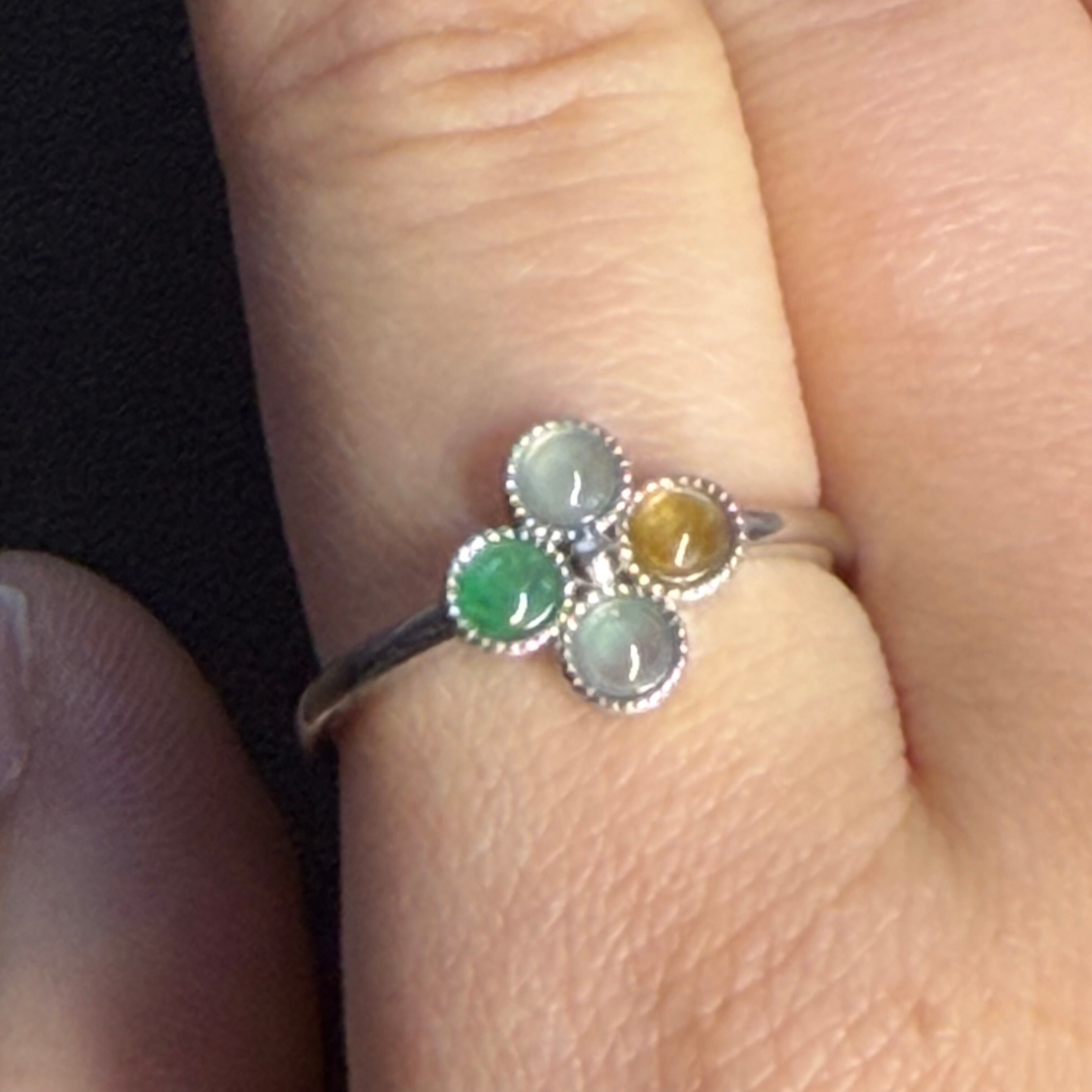 本翡翠指輪 リング ミャンマー産 氷種 可愛いデザイン ミックス 希少 一点物