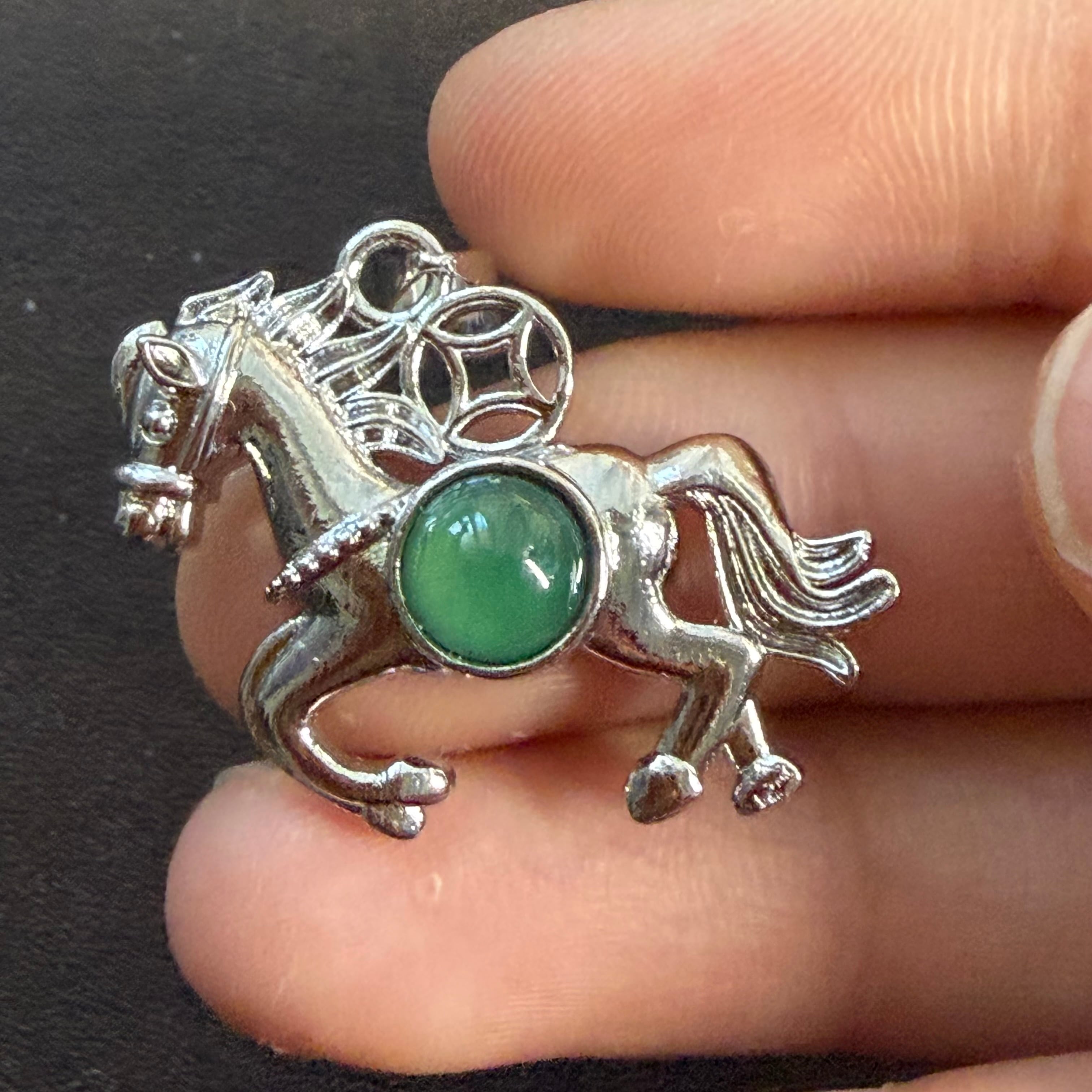 本翡翠ペンダント 馬 ミャンマー産 緑 無含浸 無着色 可愛い