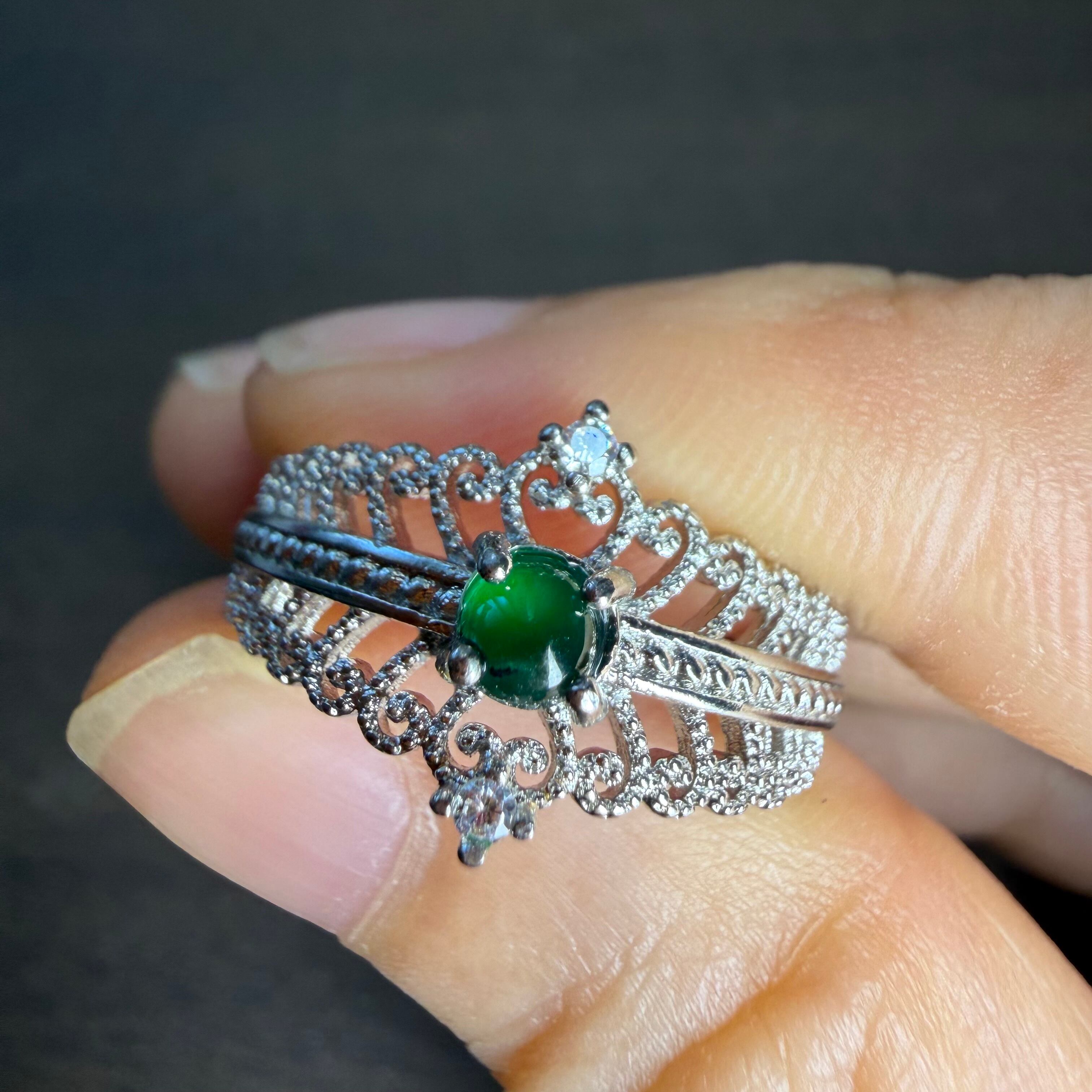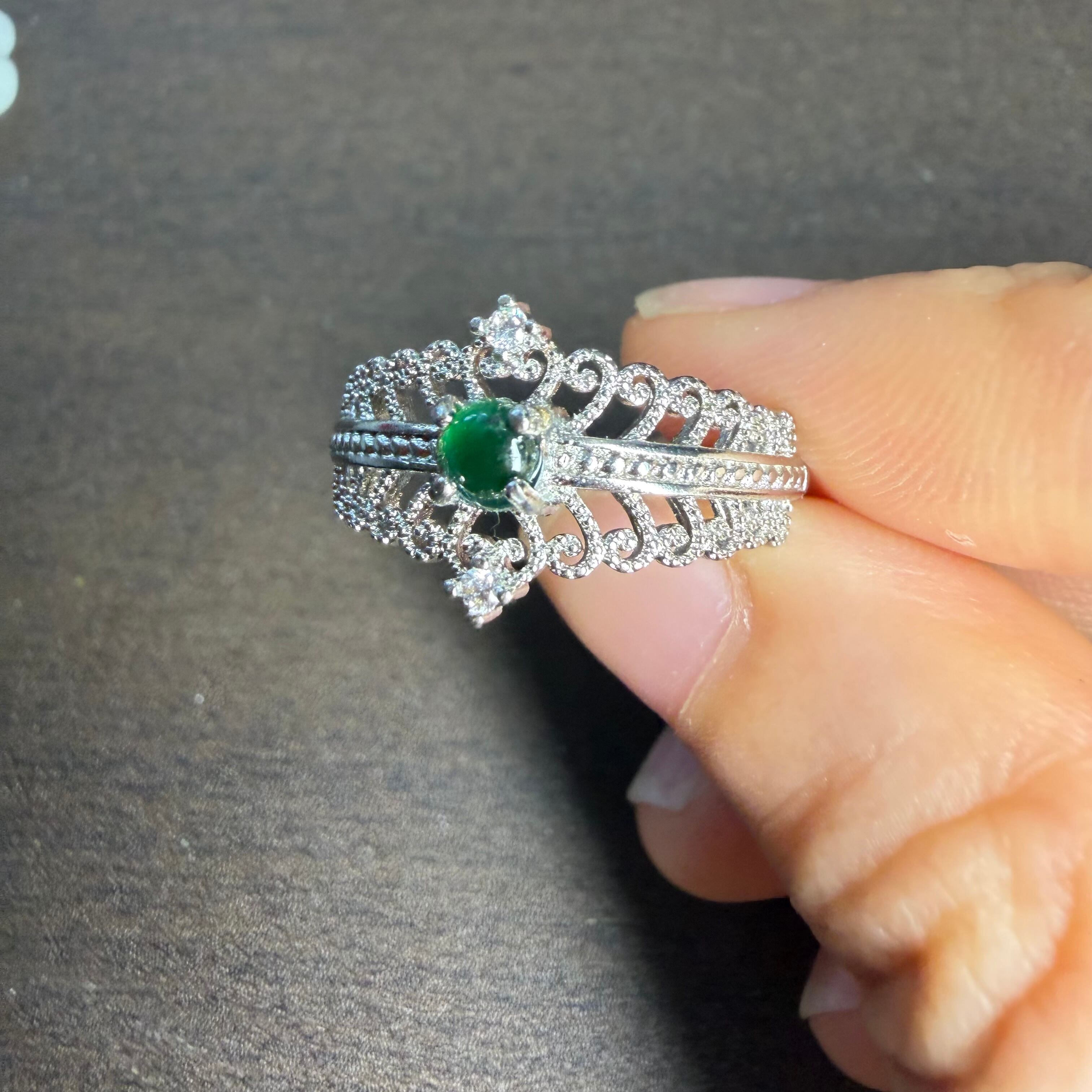 本翡翠指輪 リング 可愛い王冠 無含浸 無着色 お買い得