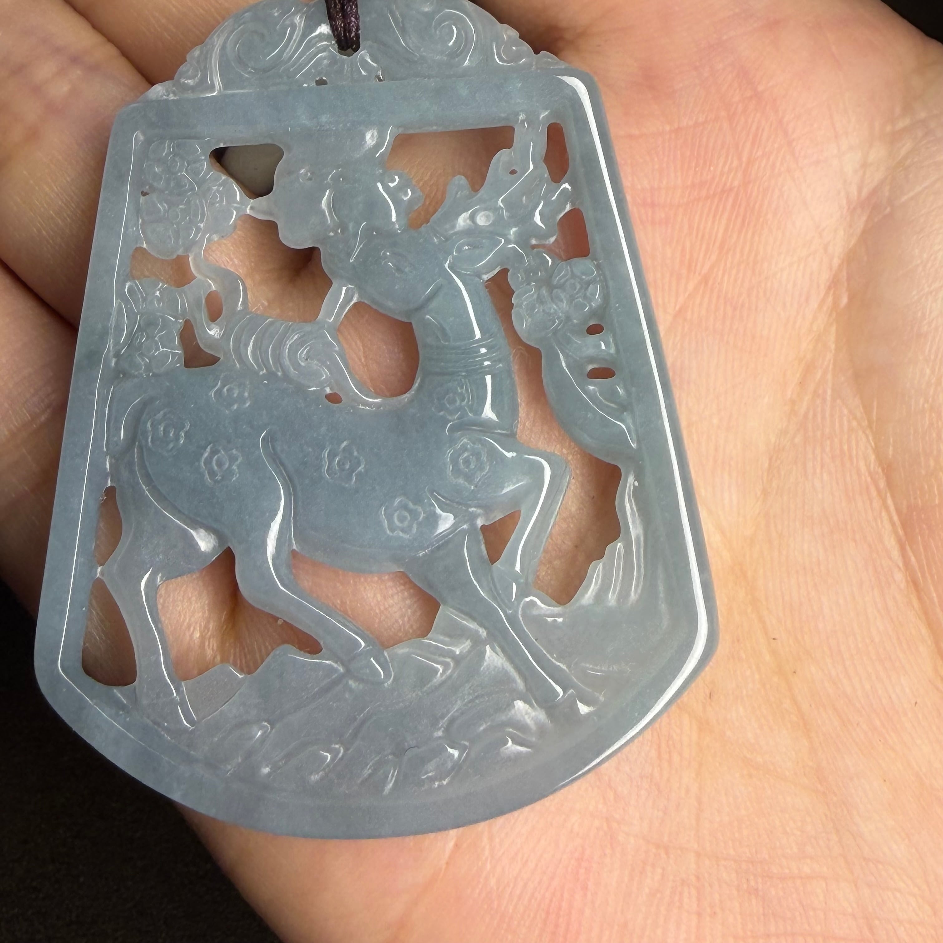 本翡翠ペンダント 彫刻 鹿 無含浸 無着色 お買い得 可愛い 一点のみ お守り