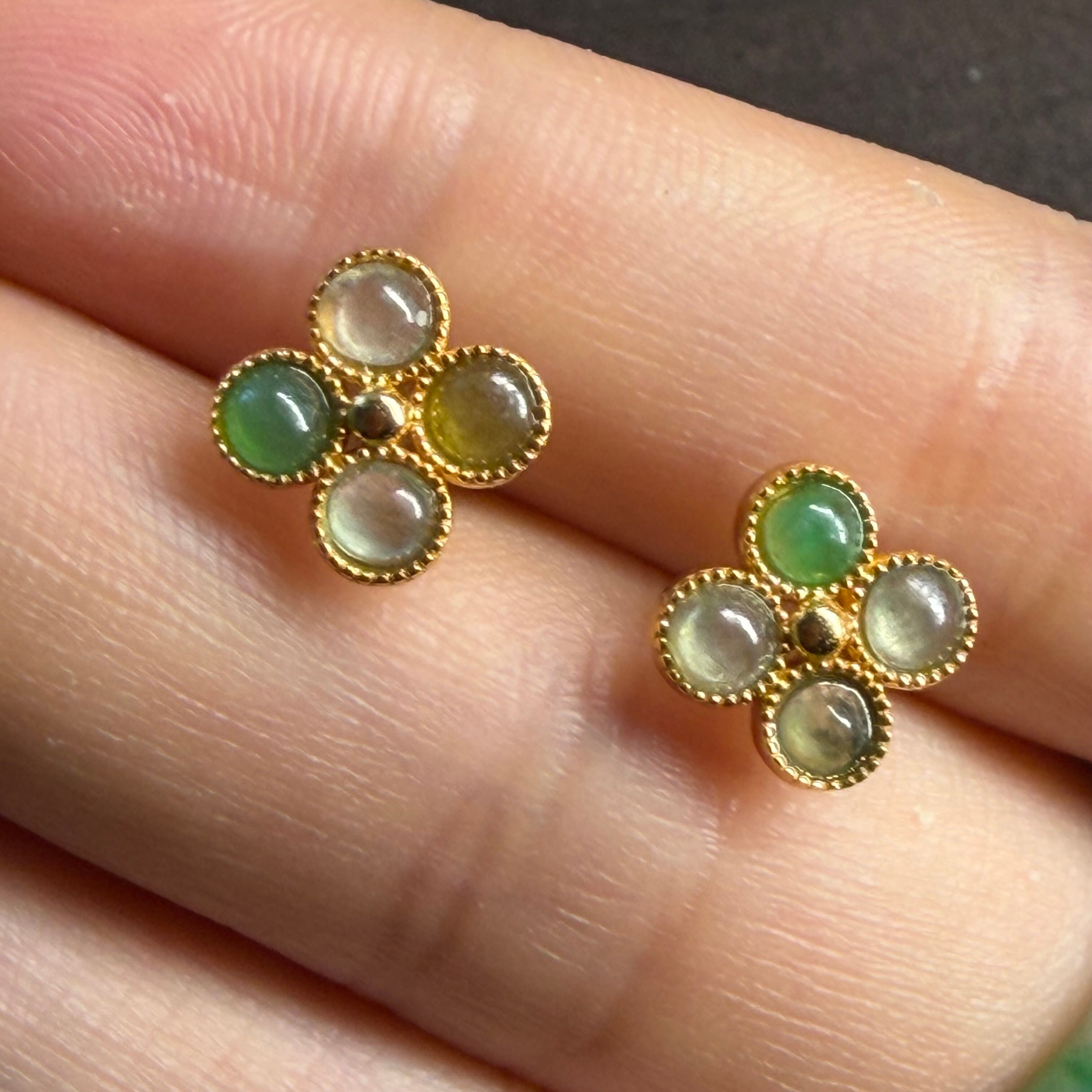 本翡翠ピアス 四葉 可愛いおしゃれ 無含浸 無着色 高級品 一点物