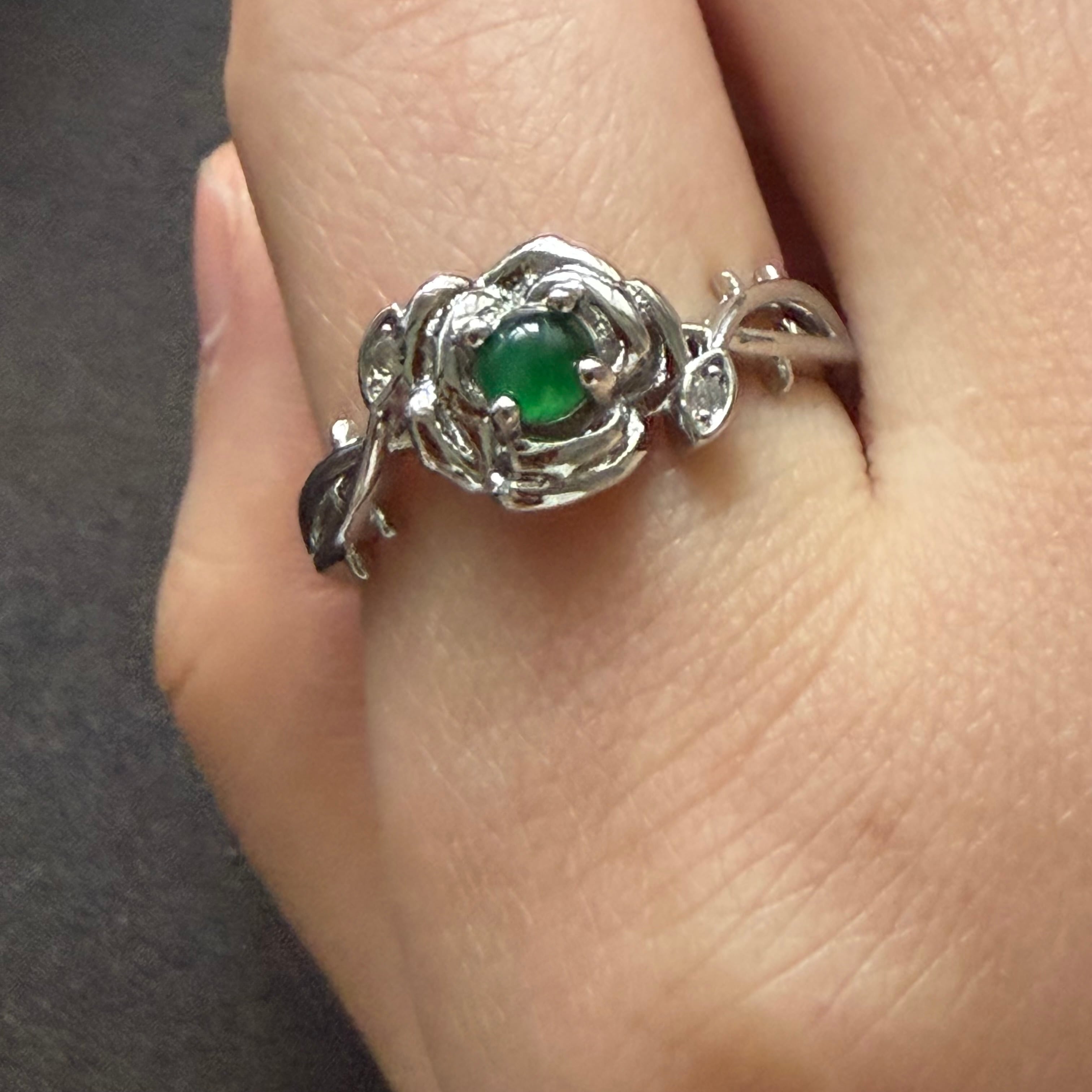 本翡翠指輪 リング 氷種 可愛い おしゃれ 無含浸 無着色 バラ模様